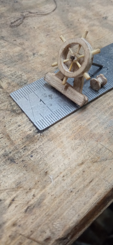 Teď budu dělat drobnosti k lodi. Kajuty, sudy, pumpu, člun, kormidlo a nějaký polokladky už mám hotový. Tak bych se asi pustil do stojanu kormidla a zkusil vyrobit další kladky. Než vymyslím strojovnu. S tím si vůbec nevím rady, natož to udělat tak, aby to fungovalo. To mě trápí ze všeho nejvíc.