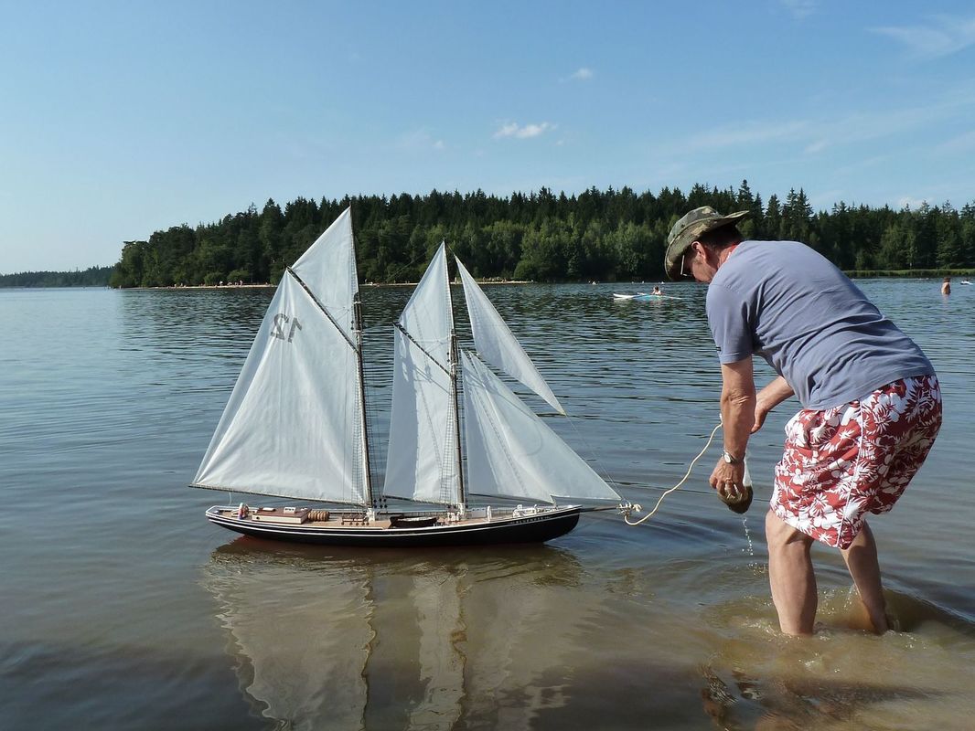 Myslím, že budu mluvit za nás všechny, když řeknu, že Michal je takový náš guru. Byl u zrodu plachetničkářů, založil jedno z nejlepších a nejpohodovějších setkání na Dářku, kdykoliv někdo potřebuje, tak přispěje dobrou radou a nevím, jak to dělá, ale stále je dobře naladěn s milým úsměvem na rtech. Za celou svou modelářskou kariéru postavil spoustu plachetnic a díky svým jachtařským zkušenostem s nimi jezdil výborně. Když jsem začínala, „opisovala“ jsem od něj, kdykoliv jsem měla příležitost. A víte, na co vzpomínám asi nejvíc? Na večery pod stanem, kdy seděl na schodech svého auta a vyprávěl své historky, u kterých jsme se všichni váleli smíchy. Jeho vypravěčské nadání nemá v naší partě konkurenci, natož jeho laskavý humor 😊.