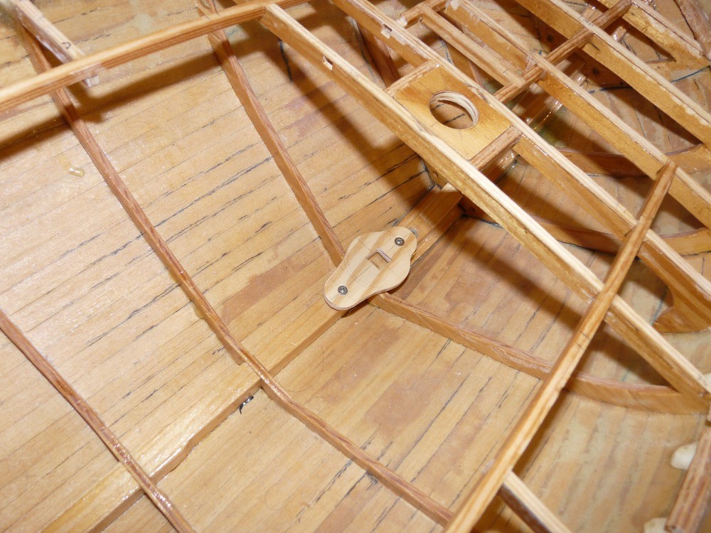 Základ paluby jsem na radu zkušenějších zhotovil z laminátové desky tl. 0,8 mm. (obr. 10, 11, 12, 13) Taky jsem předělal stěžňové botky a paty stěžňů. Jsou hranaté, takže by se mi stěžně neměly otáčet. (obr. 14, 15, 16, 17)