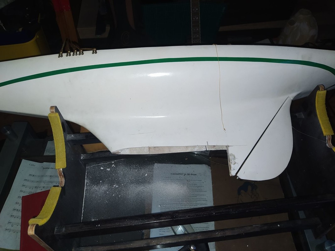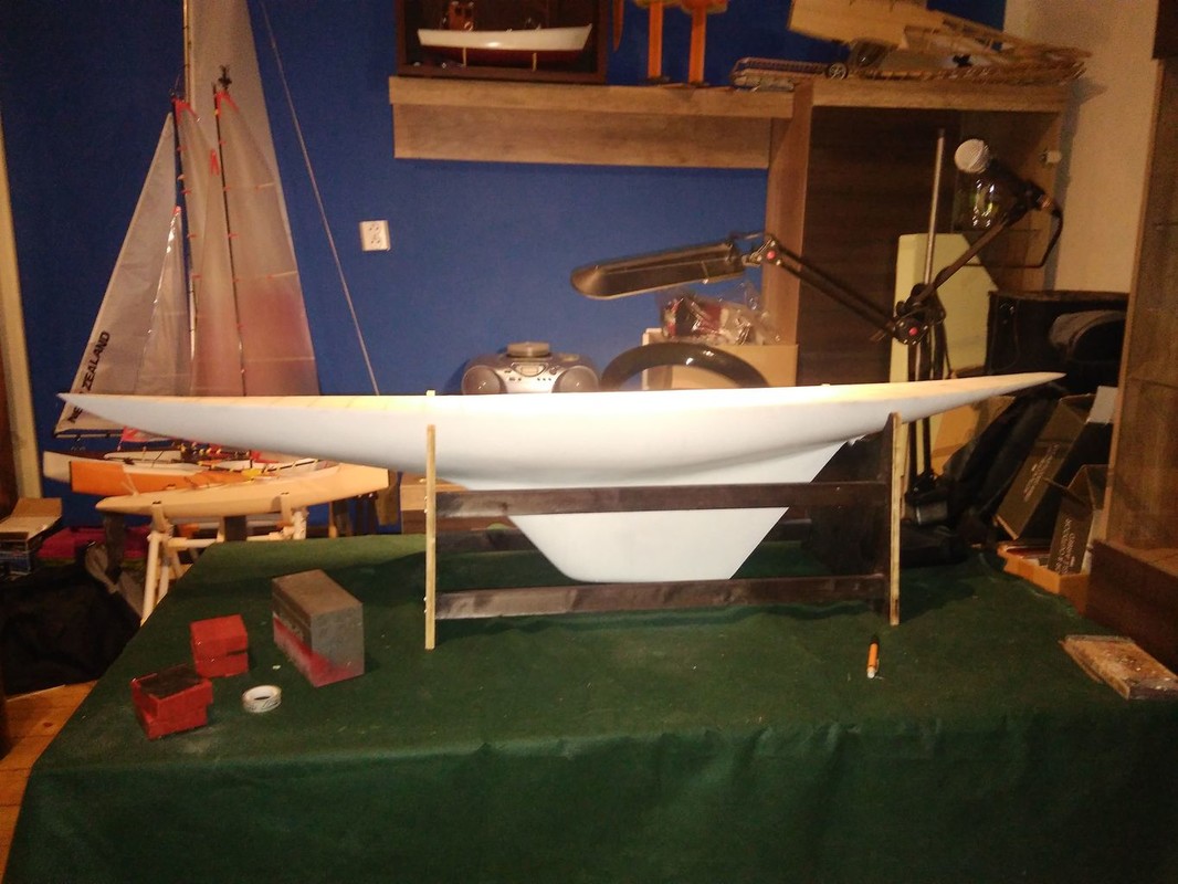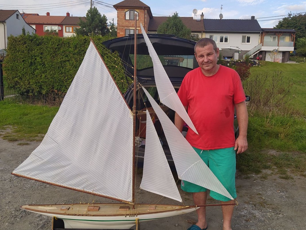 Na vodu byl můj Shamrock III spuštěn měsíc před Těrlickou plachtou 2020, ale dodnes by se dalo říct, že je stále ve fázi seřizování a zkoušení. Došlo i na šáhnutí do trupu - kvůli balastu. Když se loni na Buňkově rozfoukalo, loď se na zaďák podivně giglala ze strany na stranu a na bočák si občas lehla na vodu. Tenkrát mi Michal s Pepou poradili snížit těžiště. Kýl byl sice protáhnut o 50% ale snažil sem se jeho průřez zachovat maketový, takže olovo v něm dosahovalo výšky 158 mm!!!, Tak jsem ho vykuchal, zvětšil objem spodní části kýlu a maximální výška je teď necelých 70mm odspodu. To snížilo těžiště lodi a zlepšilo jízdní vlastnosti. A teď přes zimu dostal Shamrock ještě nové plachty z padákoviny, a to je zas úspora hmotnosti nad těžištěm o cca 200g. Možná by se řeklo, že dvě deka u 12-ti kilové lodi je nic, ale pokud je to na tak velké páce, myslím že to pújde poznat. Pořád se také učím nastavení plachet, při jakém větru je vhodné zredukovat plachty odstraněním vrcholovky a létavky. Nově se mi snad podaří i předělat a připravit lanoví tak, aby šlo zmenšit plochu hlavní plachty cca o třetinu.