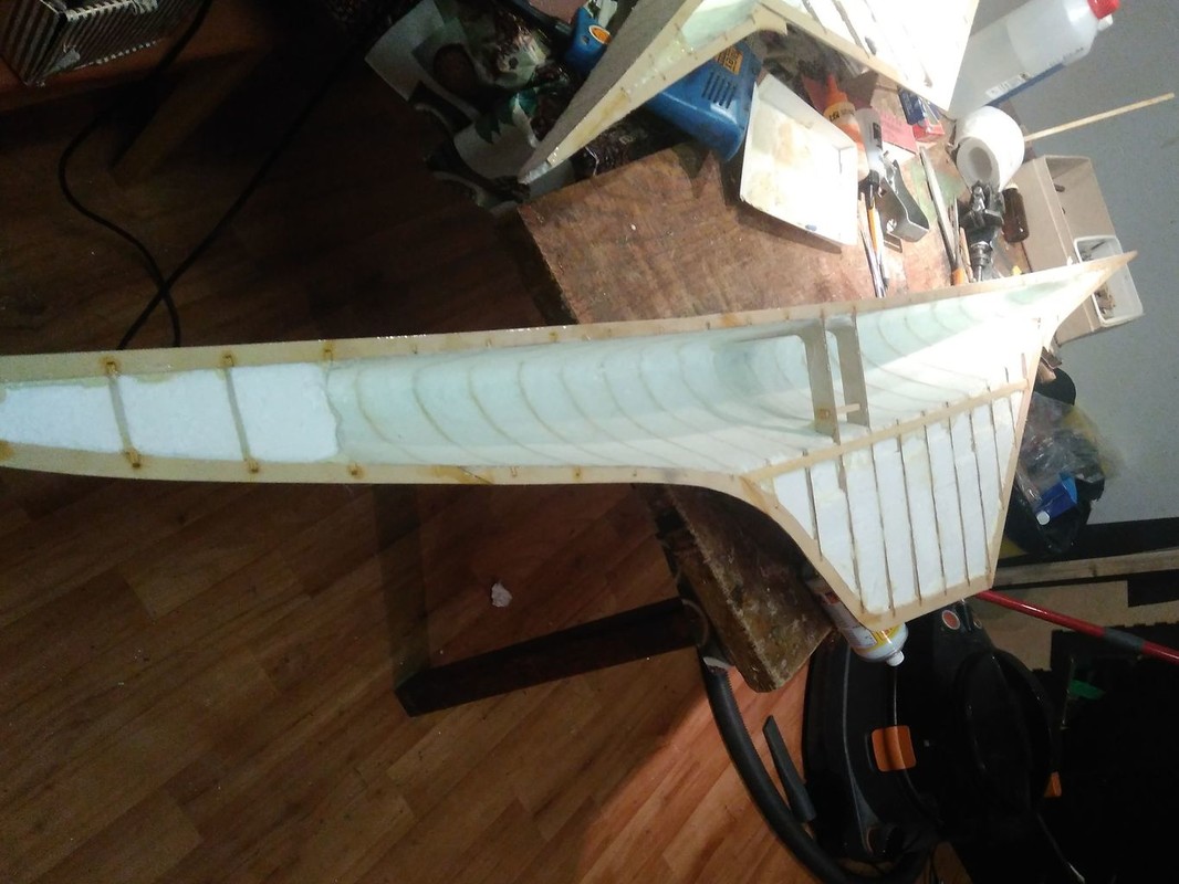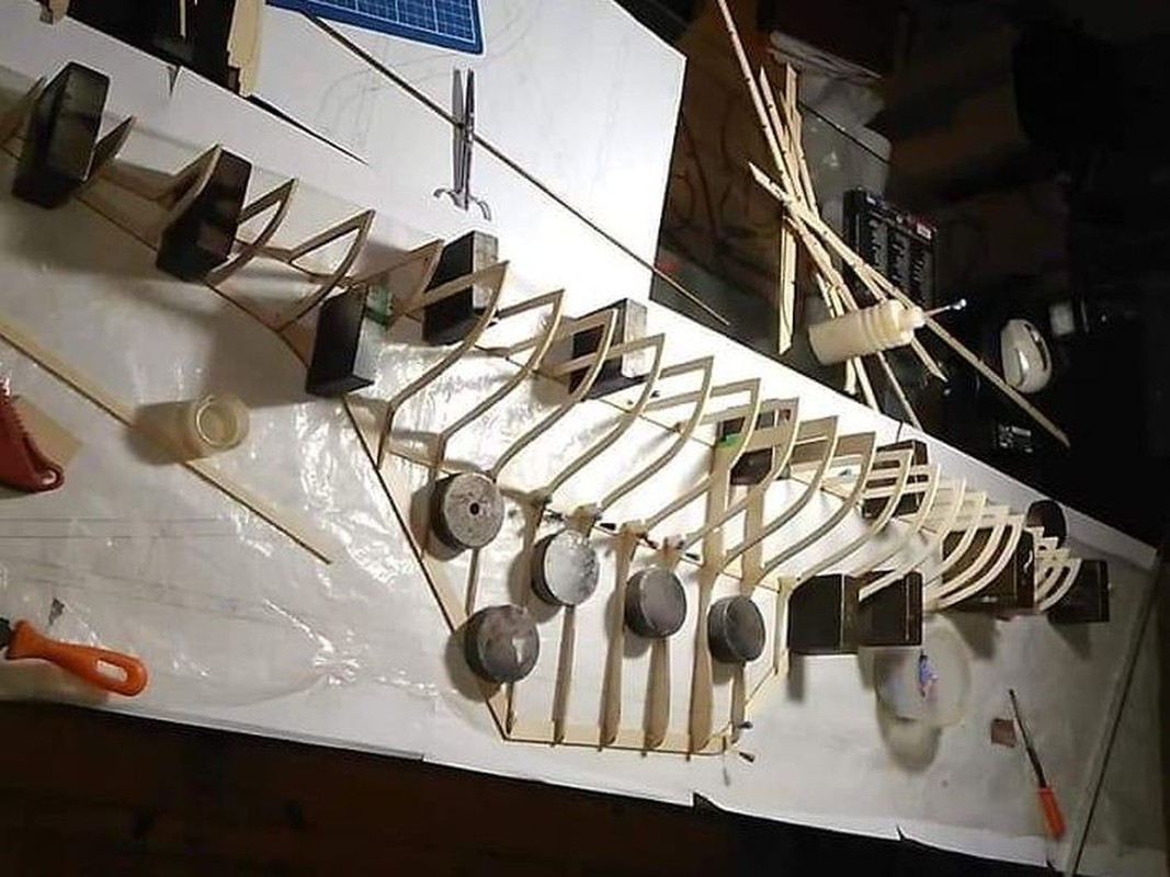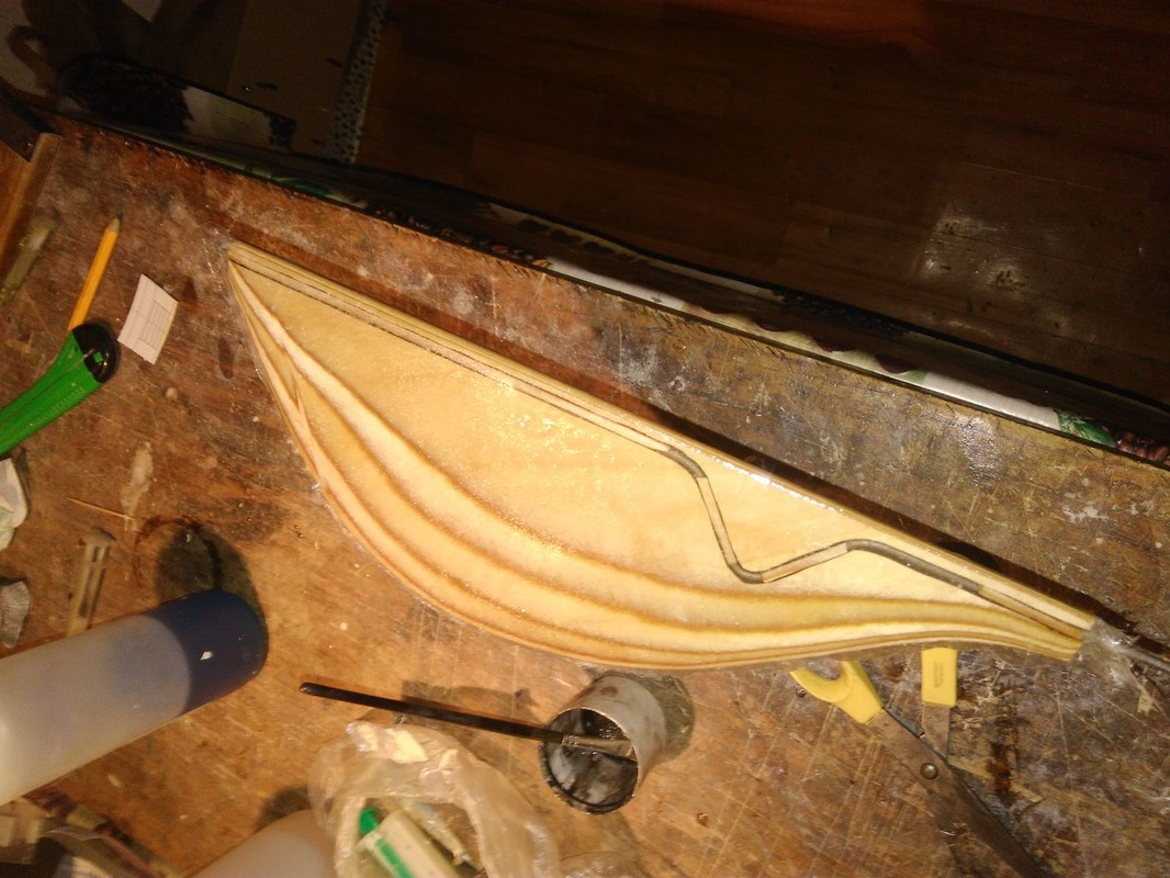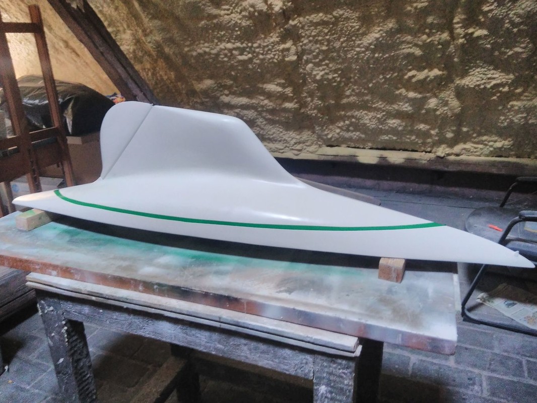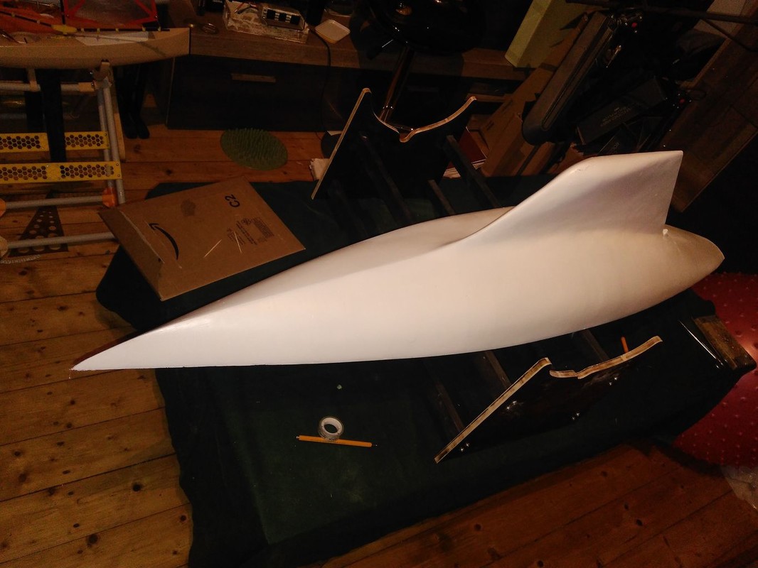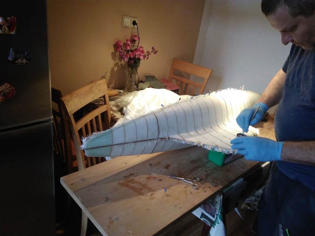 Zatímco Andrejka začla stavět své Machichaco klasicky (žebra a plaňkování, jelikož sem ji to tak přichystal :-) já sem chtěl zkusit trup laminátový a veden stavebními postupy "Z loděnic" na mimisailu a věren své dlouholeté leteckomodelářské praxi jsem zvolil cestu stavby trupu ze dvou polovin se žebry z lehké topolovky prolepené polystyrénem.