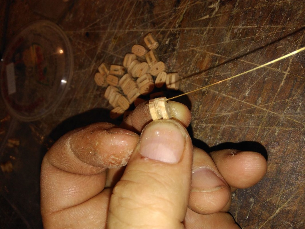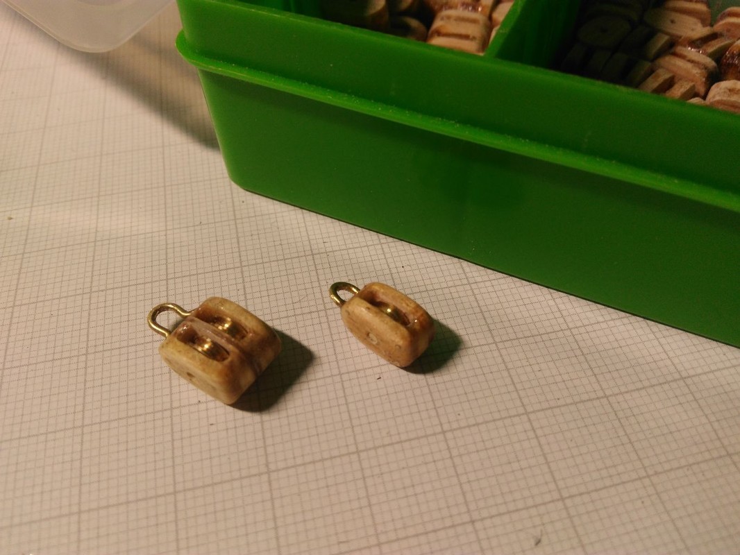 Díky malé zkušenosti jsem na maketových detailech strávil násobně víc času, než by bylo třeba. Takovou lanovou podložku pod kladky, jsem "zauzloval" po dvouhodinovém trápení, pro případné zájemce doporučuji provázek lehce prolakovat třeba řídkým zaponovým lakem.
