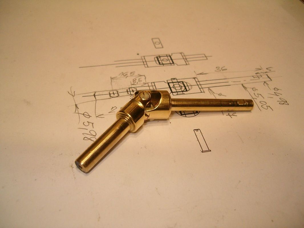 Jenže mi zbyl ještě čas po dokončení lodi, tak jsem se pustil do výroby kardanu vlastního. Celý jsem ho okopíroval, jen jsem použil na výrobu mosaz a zvětšil díly, jak to jen šlo.