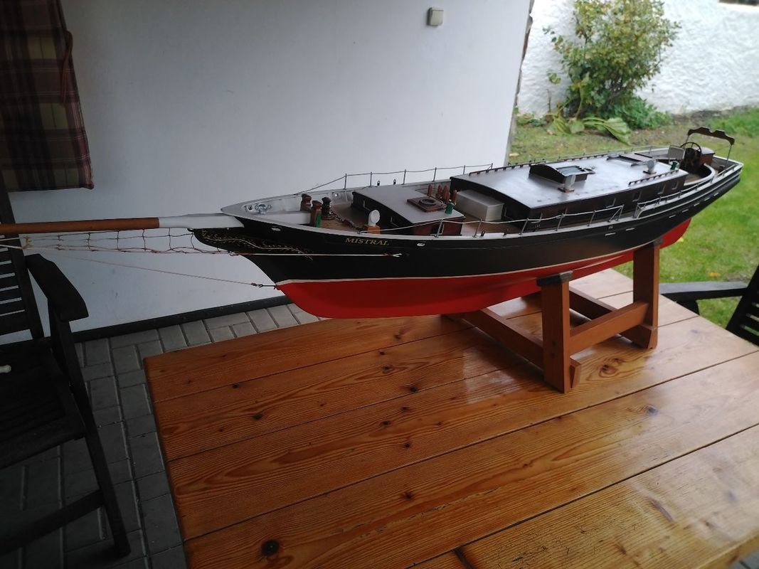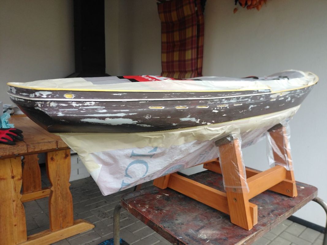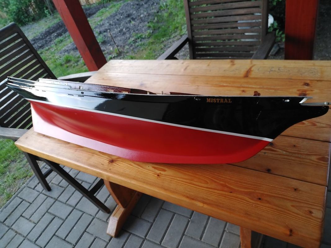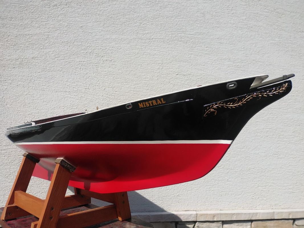 Nemám v úmyslu odložit Doriana, to vůbec, ale co si budeme povídat, ten je přeplachtěný a tudíž vhodný do mírného větru. V silném je špatně ovladatelný a bez horních plachet moc nejede. Mistral jak si myslím, že bude větru odolnější. A hlavně, prostě se mě líbí. Takže jsem ho přivezl domů, pořádně na něj hodil oko a usoudil, že je z mého pohledu je zralý, na celkovou renovaci.