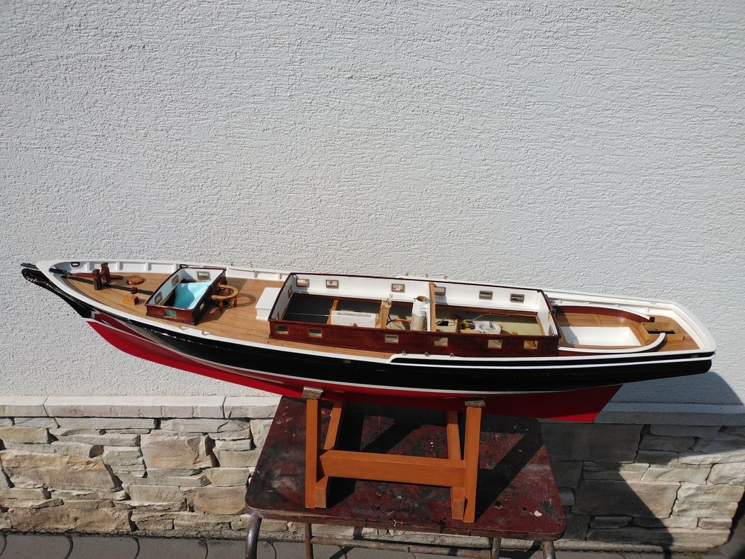 Navíc, stejně v zimě jsem neměl na modelaření čas a pokud jsem se k něčemu o volnu dokopal, tak jen k tomu, že jsem se vrtal a zušlechťoval Kadetta (můj veterán Opel Kadett). Nicméně už jsem se na to vrhnul a po chvilkách usilovně fachčím. Všechno jsem odstrojil a pustil se do broušení. Paluba už je přebroušena a nalakovaná matným lakem Tikkurila Unica Super, nástavby zase lakem lesklým, od stejného výrobce. Hotovo je kompletní nové zasklení a borty natřené bílou - to bylo docela časově náročné.