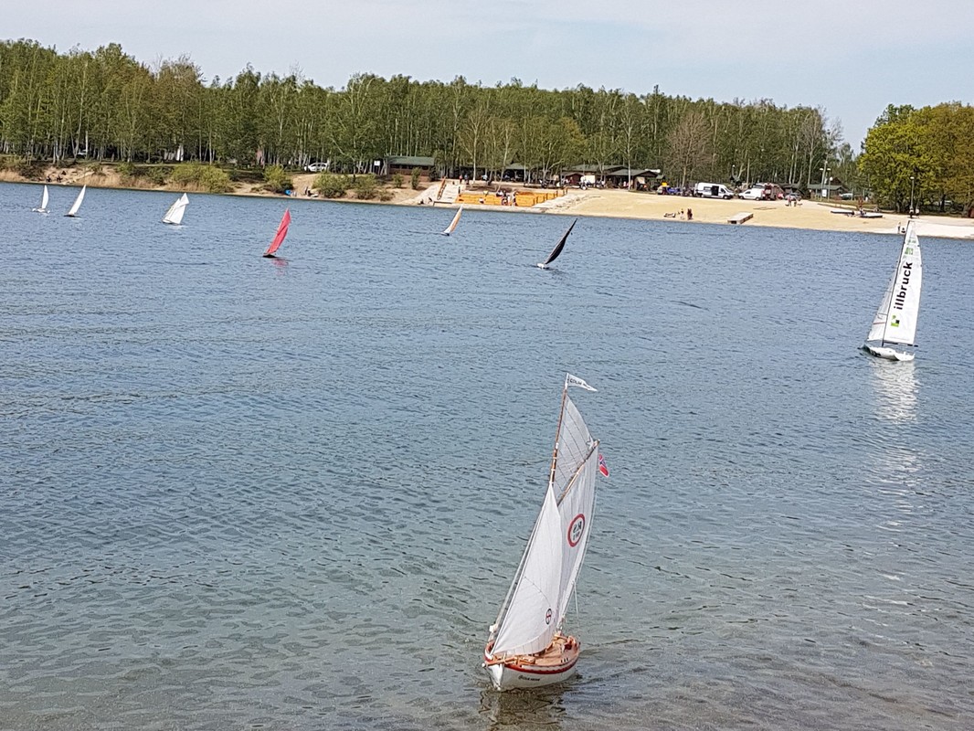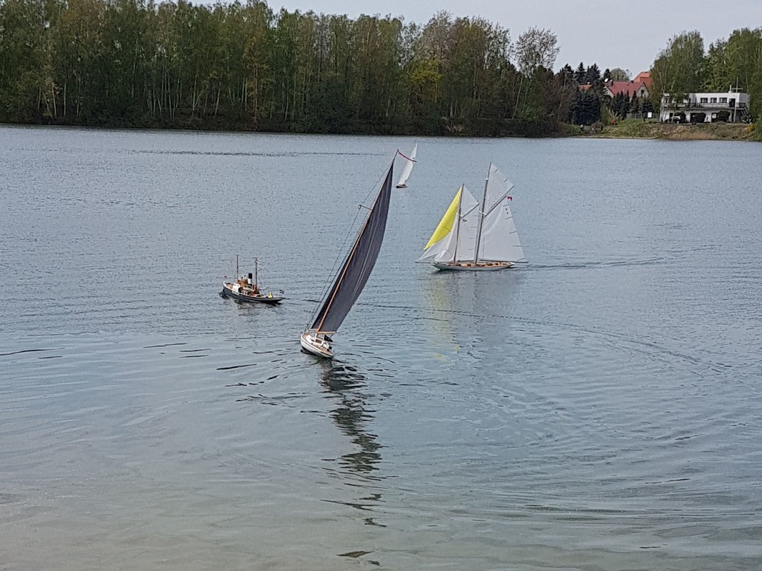 Účast byla hojná a radost z osobního setkání velká. Z asi největší dálky přijel Bambinot, který si přivezl velkou přepravku, na které byla nalepena lodní nástavba - kormidelna. Když však celou přepravku i s nástavbou položil na vodu a řízeně odjel od břehu, pochopil jsem, že se jedná o tlačný remorkér ;o) Štěstí, mít za kamaráda Bambinota, ocenil za chvíli Pirát, jehož „Pirate“ uvízl za kýl několik metrů od břehu. Komu by se chtělo do vody? A tak byla situace za chvíli vyřešena.