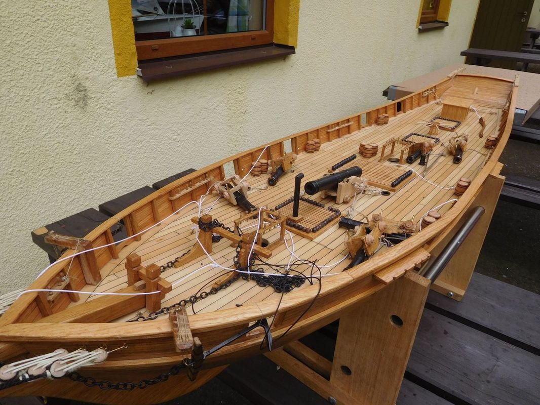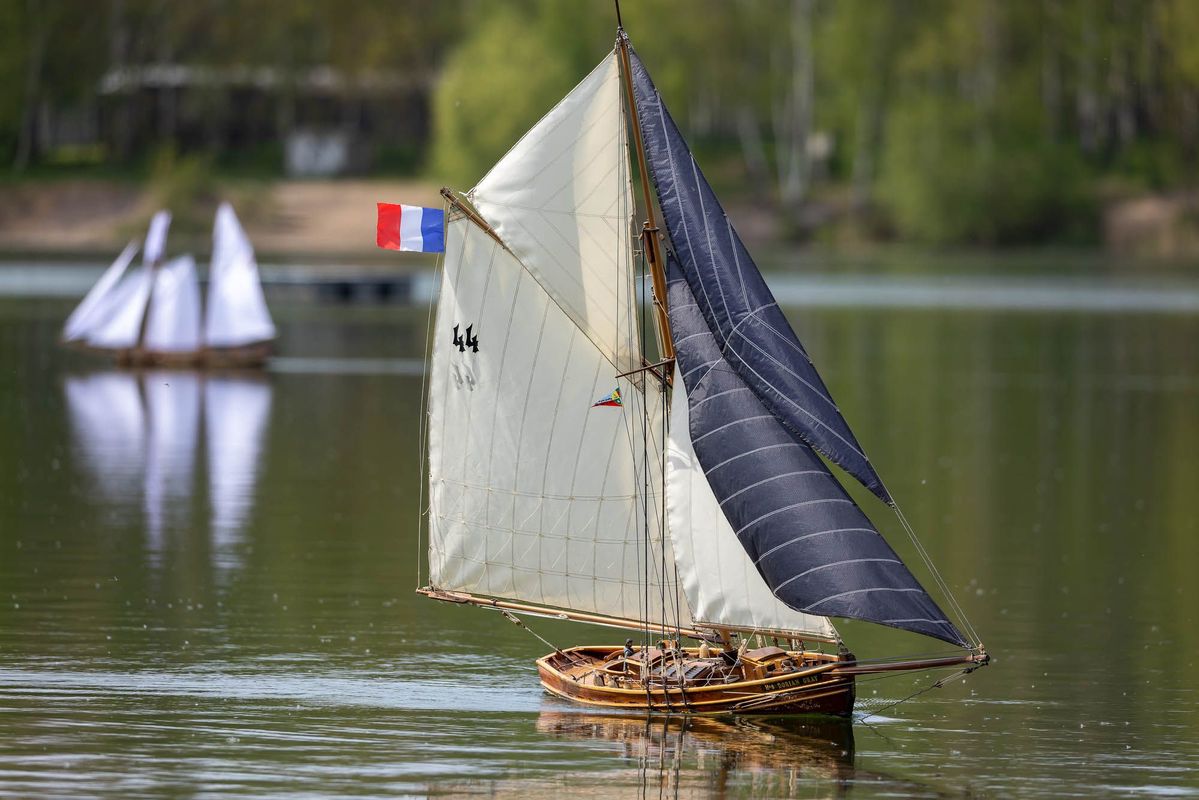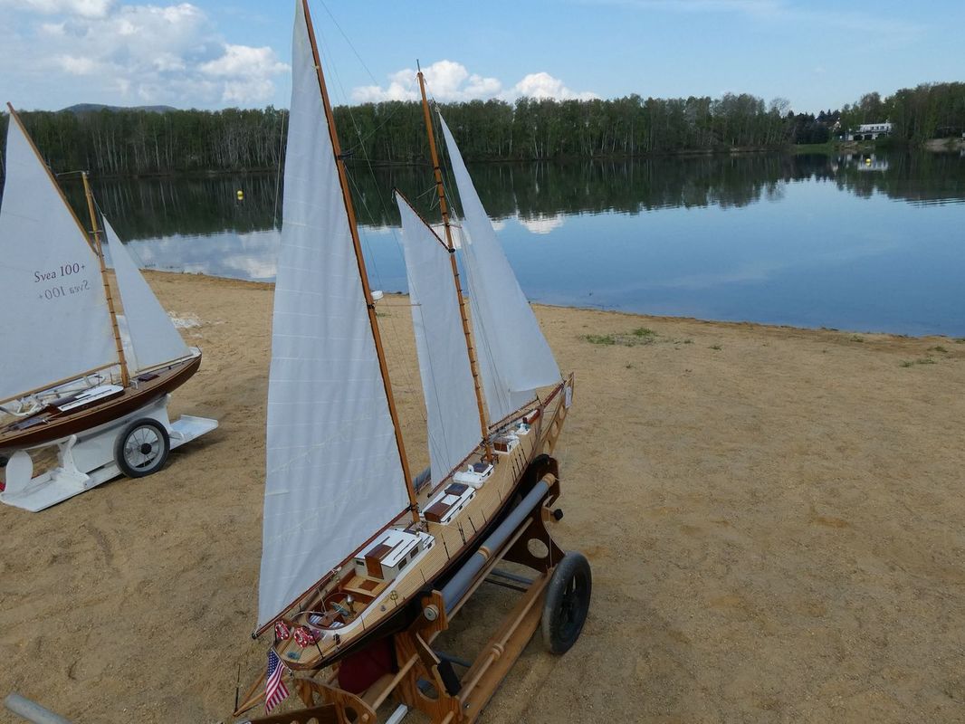 Tradiční páteční mezeru mezi zahájením a první jízdou, způsobenou bodováním modelů jsme vyplnili instalací meterologické stanice. A pak už začal kolotoč jízd. Očekávanou událostí při jízdách NSS-B byla po letech účast dvou modelů, které spadaly svou příčnou plachtou do kategorie NSS-C. Ta se v předchozích letech trochu zvrhla do modelů s moderním latinským oplachtěním. Po deseti letech od období lodí jako La Renard, Sweden Yacht, Elen, Sultana (2012), se objevily dvě nové lodě. Milanova Berbice a polský Halkon. Oba modely jsou Baltimorské škunery a každý nese jednu příčnou plachtu. U obou konstruktéři – modeláři přistoupili k ovládání jediné příčné plachty. Na místě jsem tak mohl přímým dotazem u Borka Dvořáka ověřit to, co je myšleno „ovládáním“ příčné plachty, které musí být na modelu funkční. Odpověď zněla, že myšleno bylo zejména ovládání směrového nastavení ráhna k ose lodi. Ale že vzhledem k možnému rozšíření kategorie by uznal i jen funkční kasání plachty.