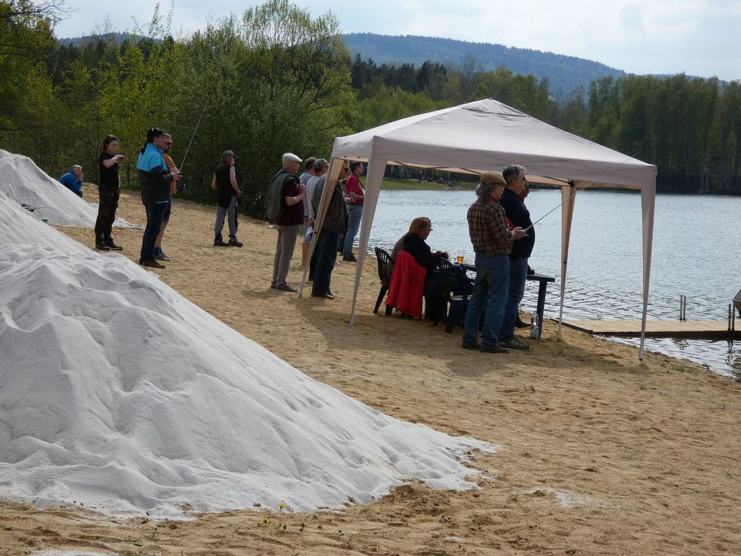 Za ty dva roky se mnoho na Kristýně změnilo. Pro koupající se rekreanty k lepšímu, pro nás k horšímu. Popravdě, jsme tam jednou ročně a rekreanti celé léto. Úpravy břehů pokračují a tak jsme na startovišti měli navršené hromady bílého písku, který čekal na rozhrnutí, přibyly nová mola a schody pro slunící se hosty kempu. Naštěstí některé věci přetrvaly, jako například spolupráce s potápěči, kteří obětavě obsluhují naši kotvící bóji pro maják. Ve čtvrtek, když jsme s Kubou maják kotvili, tak jsem tedy netušil, že se s nimi v sobotu odpoledne uvidíme. A chatky stojí na svých místech, restaurace se sálem - loděnicí také. Takže vše bylo připraveno a Kristýna 2022 mohla začít.