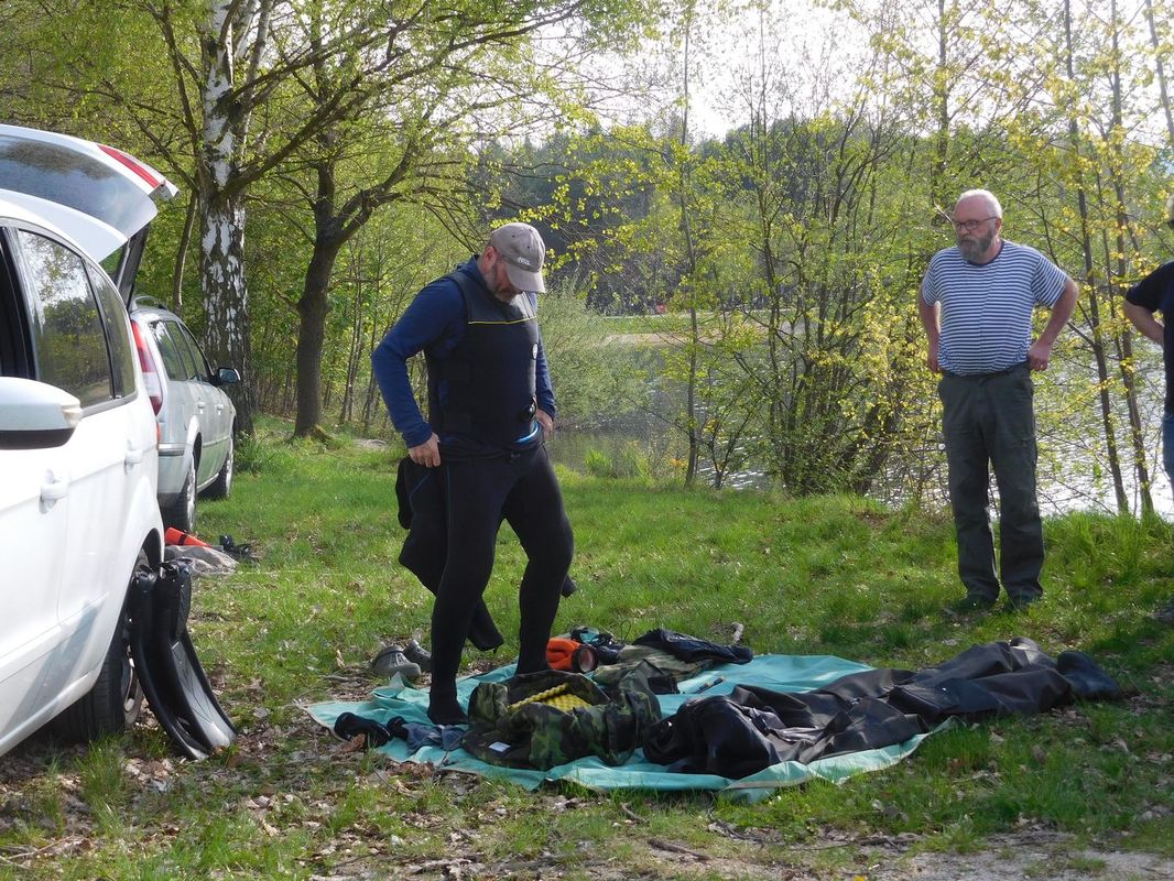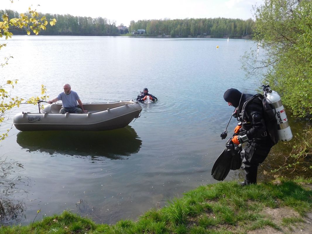 Patří se vyjádřit velký dík oběma potápěčům, kteří vodu opustili až za nějaký čas. Prostě si po úspěšném nálezu a pomoci s odlepením lodě ze dna jen tak někam zaplavali, když už byli dole. Při odstrojování a ukládání výstroje jsme slyšeli, jak to „tam dole“ probíhalo. Loď si prý hověla měkce na dně, mírně nakloněna a svítila bílými plachtami (ve světle baterií). Tak prý na sebe koukli a zalitovali, že musí nahoru. Byl by to další z objektů na dně, které mají zaměřeny a zakresleny v podvodní mapě, které čas od času navštěvují. Inu každý koníček má své a nám se líbí lodě na vodní hladině.
