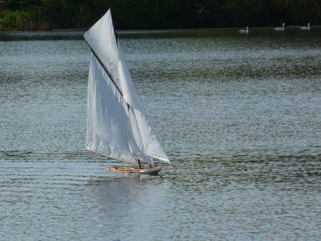 S napětím jsme tedy křižovali před prvním startem NSS-B a dvou NSS-C a slibovali si, že se těmto lodím vyhneme obloukem. Obě jsou krásně postavené, Berbice v nádherně pestrých barvách, Halkon zase v přírodním dřevu. Odpočítávání, a vyjeli jsme středním větru na první regatu, zase spolu s Céčky. Protože jsem měl model na vodě, zaznamenal jsem jen příběh Berbice, která se v půlce prvního kola naklonila, vítr ji připlácl k hladině a loď se začala pomalu potápět. Nový člun byl zrovna zaměstnán jinou kolizí a přes okamžitou Kubovu reakci dojel na místo potopení o pár vteřin později. Jak to bylo s Halkonem nevím, ale také bohužel nedojel první kolo. Jeho problém byl v přetížení servopohonů a velkými odběry došlo ke spečení napájecích kabelů a tím loď musela z vody.