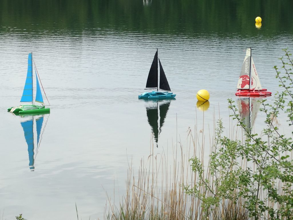 Neděle vypadala už zase na rozumné, asi nejlepší podmínky, vítr celkem ustálený na 2-4 m/s od severu, od vody. Tomáš se s Amati, do které stále teklo, bál 1,5 h dlouhou regatu jet, potápěč, který v pátek vylovil plachetnici Petry v sobotu odjel do lázní a další dva byli ve stavu nemocných. Já jsem si tedy řekl, že pojedu místo něj s Lonou a on to odpíská za mě. Lonu jsem měl sebou hlavně kvůli bodování s ostatními a ušetření si práce v Bakově na první soutěži MiČR, nakonec zbytečně, protože většina plachetnic MiČR neměla body z Kristýny, takže se bodovaly všechny znova. Tím, že jsem s jízdou vůbec nepočítal, po zimě jsem ji vůbec nezapnul. Po položení do vody, jsem zjistil, že kormidelní servo funguje jen na jednu stranu, na druhou s dopomocí. Z toho jsem usoudil na špatné servo a plachetnici vyndal, bohužel než jsem na ni dosáhl udělala obrat a já šel až do pasu do vody. Až teprve doma, po vyndání a rozebrání serva, výměně přijímače a stále nenalezení chyby jsem zjistil, že důvodem byla asi slabá baterka, nebo vysílač, u kterého jsem měl už na MS problémy s pro mě nepotřebnými přepínači, dva z nich se teď úplně rozpadli (byť jsem s touto vysílačkou mezi Kristýnou a opravou vyhrál dvě soutěže s motorovými modely na Grádu). Takže trochu s lítostí, protože i pro mě ideální vítr a započítání koeficientu v regatě mohlo vést k dobrému výsledku, jsem Lonu vyndal. Ostatně bylo to na konečném pořadí vidět, v první pětce všechno plachetnice s malým koeficientem.