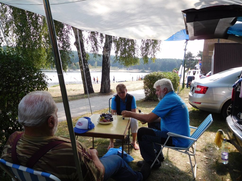 Prochodili jsme historické centrum, kde na nás dýchly dějiny a turistický ruch. Pak nás čekala ještě cesta na sever do místa konání závodů. Po typicky vřelém přivítání jsme se ubytovali a večer poseděli se zbytkem české výpravy, což byl již řečený René Walenta a matador Česko - Polského přátelství u vody, František Chmelka. Druhý den začal program v deset hodin zahájením v muzeu vojenské techniky, které je jen kousek přes ulici. Oficiality se protáhly oslavou desátého výročí ježdění ve třídě RG 65. Pilo se šampaňské a snědl se krásný a chutný dort. Po návratu ke startovišti začaly jízdy ergéčka a nás čekalo bodové hodnocení. Odpoledne jsme odjeli po jedné jízdě. Večer klobásy na grilu a vše co k tomu patří.