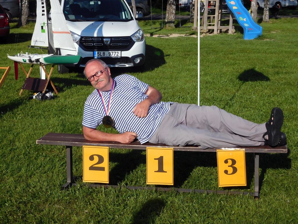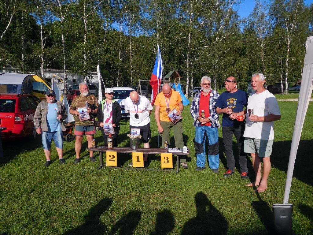 Skoro plavkové páteční počasí se v sobotu trochu zvrtlo a přišel vítr a déšť, a tak jsme na sebe zase navlékli, co se dalo. Všechny jízdy se ale do večera odjely a někteří si to opravdu parádně užívali, a to jak soutěžící, tak diváci. A konečně i rozhodčí, protože když všechny lodě i lodivody znají, tak je to brnkačka. Standa po skončení jízd promptně dokončil vyhodnocení a tak se v sobotní podvečer uskutečnilo vyhodnocení obou soutěží, při kterých byly předány Zdeňkem nejen diplomy a medaile těm na stupních vítězů, ale dárky všem soutěžícím i rozhodčím. Sklenicí a pivem nikdo nepohrdne, jen junioři to měli bez toho piva.