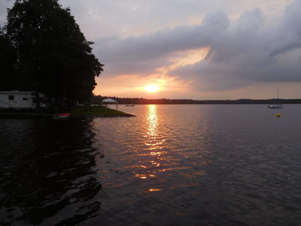 V podvečer přišla bouřka a déšť s obrovskými kapkami, po kterém se ochladilo, takže většina z nás oblékla kalhoty a mikiny. Díky dešti jsme vlastně zůstali všichni pod velkým stanem, povídalo se, jedlo, pilo, až jsme se postupně uklízeli do aut a stanů a po desáté se už kupodivu ve společném stanu nikdo nevyskytoval a bylo zhasnuto. Asi stárneme 😊. O to větší překvapení nastalo, když před jedenáctou se objevili Zemanovi (respektive Jarda s dcerou a Matějem). Na cestě na Dářko je chytla velká bouřka, která je hodně zdržela. Naštěstí se společnými silami povedlo dát dohromady deky, spacáky a karimatky, aby se mohli noví návštěvníci uložit ke spánku.