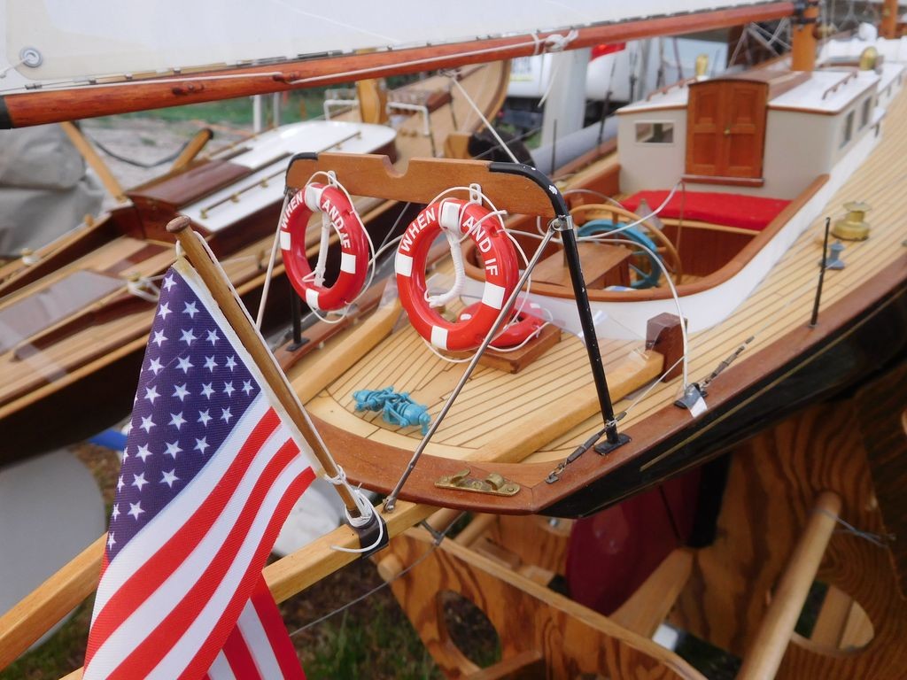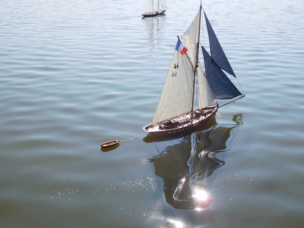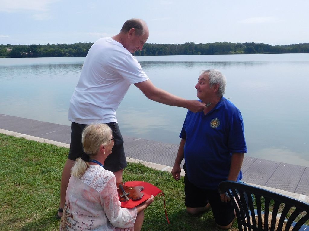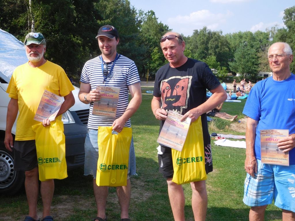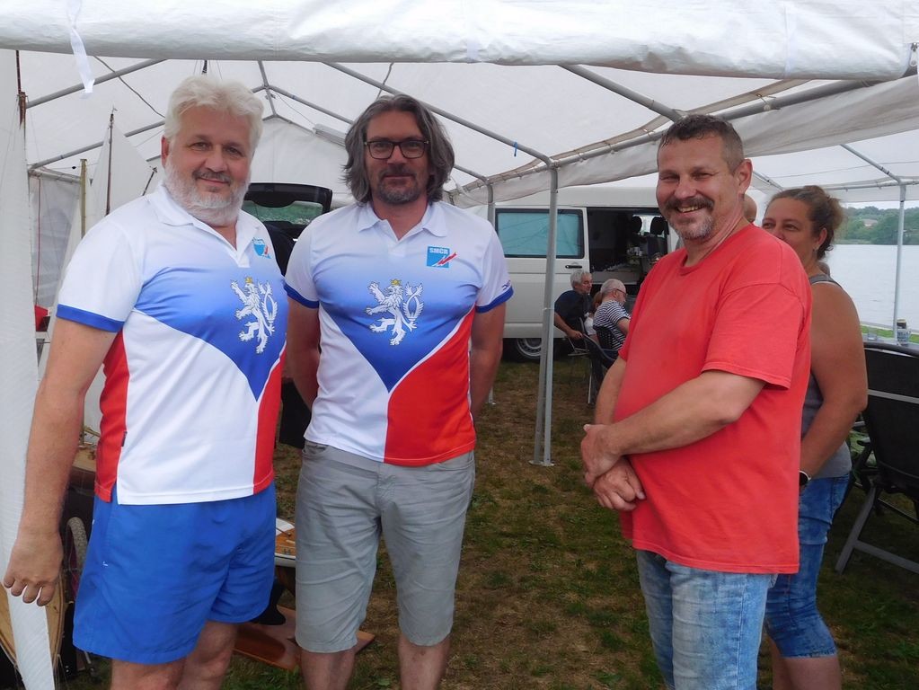 Na setkání z velké dálky přijel náš nový kamarád Rosťa Dyba s manželkou. Přivezli ukázat své dvě „čerstvé lodě“ a samozřejmě se zapojili do soutěžních jízd. Rosťa je celoživotní modelář (doposud hlavně letecký) a do stavby modelů lodí vtáhl i svou ženu Andrejku. Rosťa jezdil s lodí Shamrock III a Andrejka s další variantou oblíbené předlohy - lodi Machichaco. Modely vznikly nebývale rychle, ale podle Rosti je to právě tím, že na nich pracují „čtyřručně“. Modely byly řádně Standou proměřeny a provedeno bylo i základní „školení“ o pravidlech přednosti v jízdě během soutěžní regaty. A hned poté rovnou na vodu… Školení bylo zřejmě kvalitní, protože Rosťa byl celkově čtvrtý a v nedělní regatě dokonce druhý!