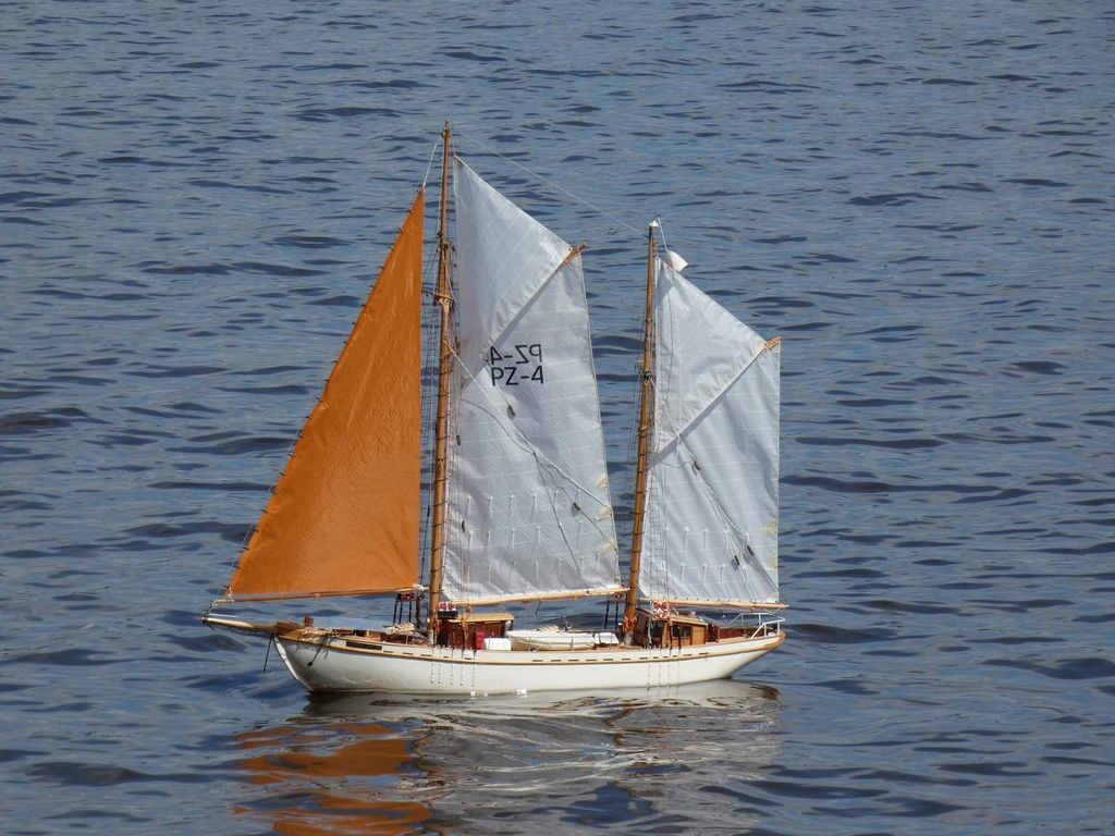 Ačkoli jsem se těšil, jak na Velké Dářko vezmu Thalassu z dílny Karla Egrta, jejímž majitelem jsem se před nedávnem stal, po měření nutných údajů pro technický průkaz jsem musel tuto myšlenku opustit. Tušíte správně – fatální problém nastal při měření skutečné vodorysky, během kterého do trupu vzlínala voda rychleji, než by bylo zdrávo (asi půl litru za 5 minut kroužení na bazénu), a tak jsem pro jistotu naložil plachetnici General Zaruski. Ta sice trpí různými neduhy, ale voda do ní neteče. K modelu jsem naložil ještě notebook, jelikož jsem na poslední chvíli dostal na hrb zpracování výsledků.