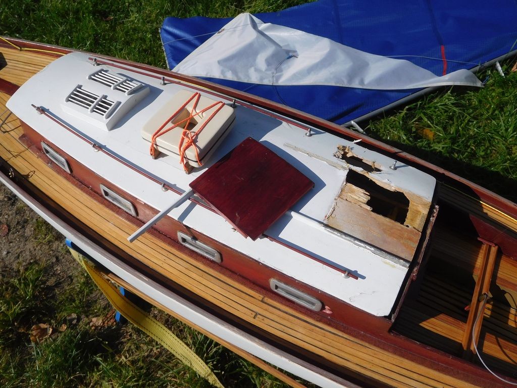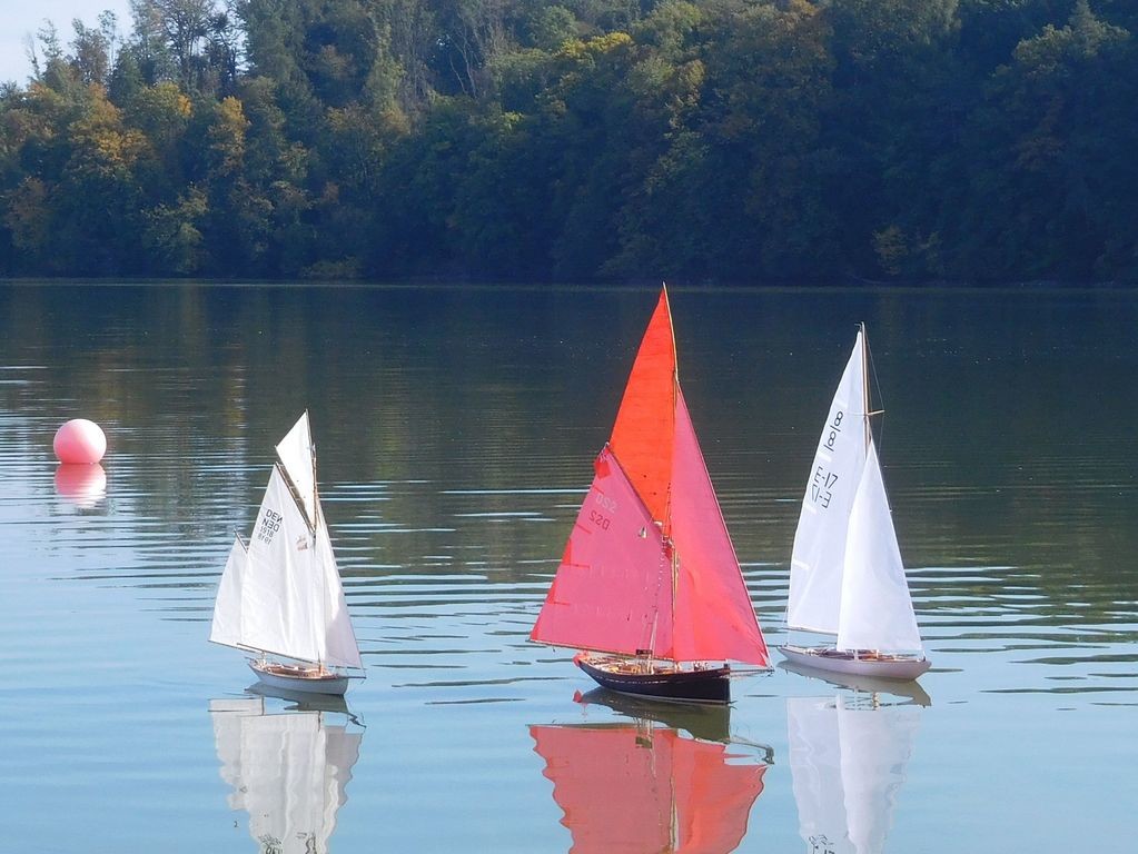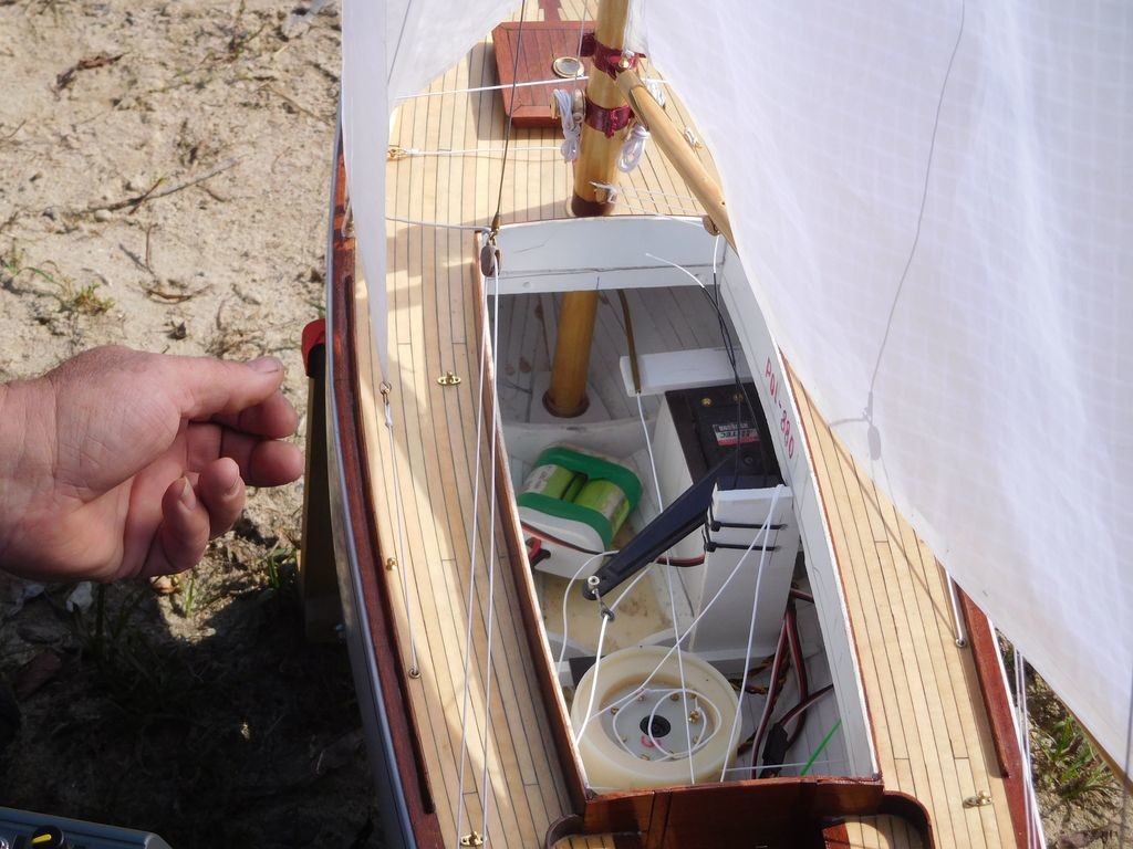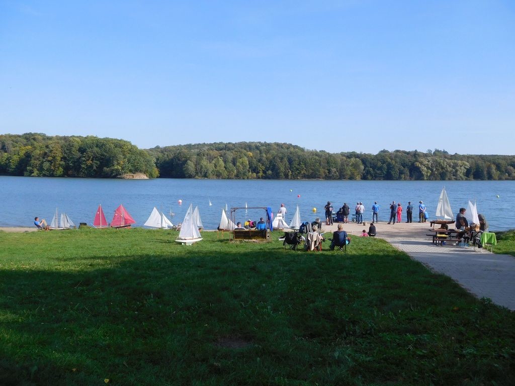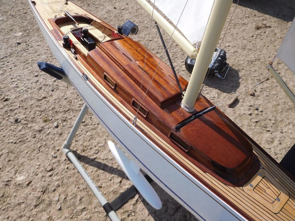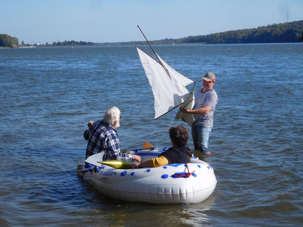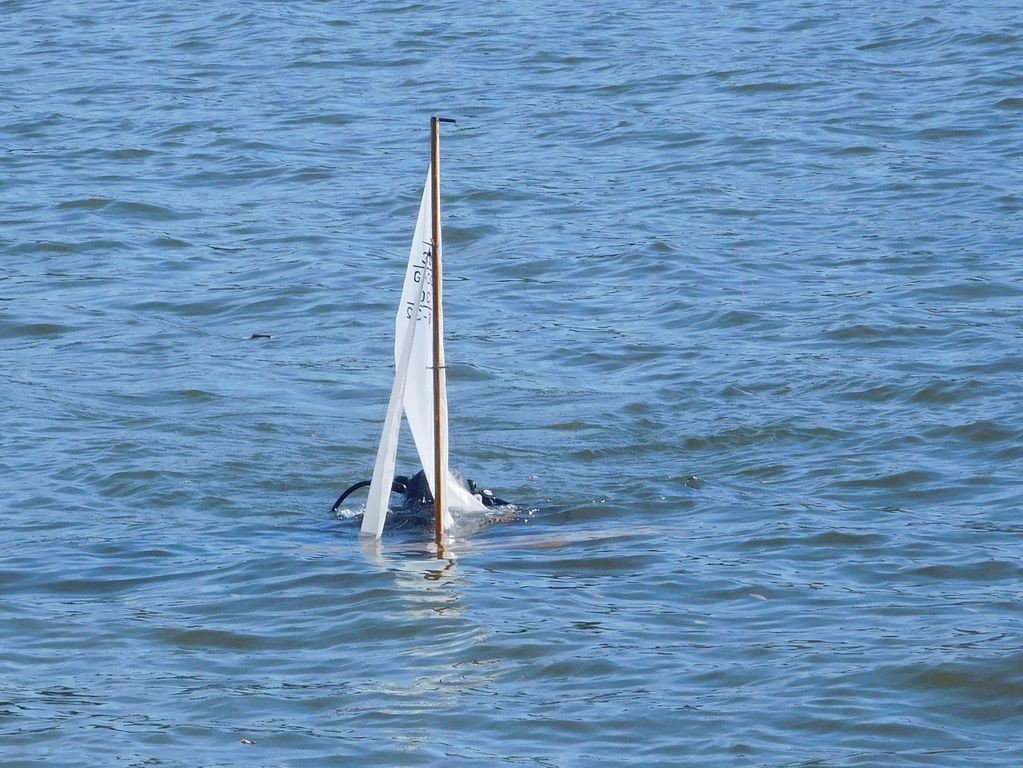 Ráno zavládlo krásné, leč bezvětrné počasí. Začali se sjíždět ostatní účastníci. Na stojáncích u vody se objevily nové lodě: Plachetnice Michala Daranowského Le Gorfou: Bílý laminátový trup doplněný kajutou z mahagonu a vypracovanými detaily z kovu. Zajímavě bylo vyřešeno rozdělené maketové a funkční kormidlo. Jestli bude jako poslední vylovena potápěči, tak bude muset absolvovat větší opravu. Myslím, že se zapomíná na stavební pravidlo: Minimální povolená tloušťka přídavného kýlu či protažené části laterálu je 0,05 maximální šířky lodního trupu. Takových plachetnic se provozuje více.