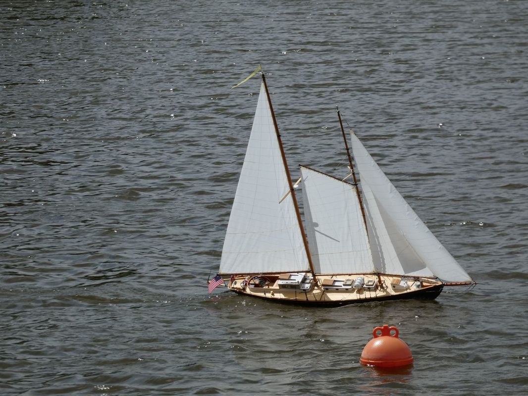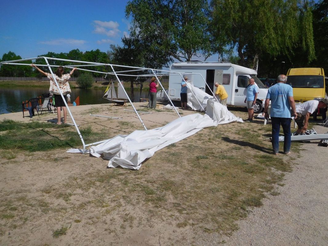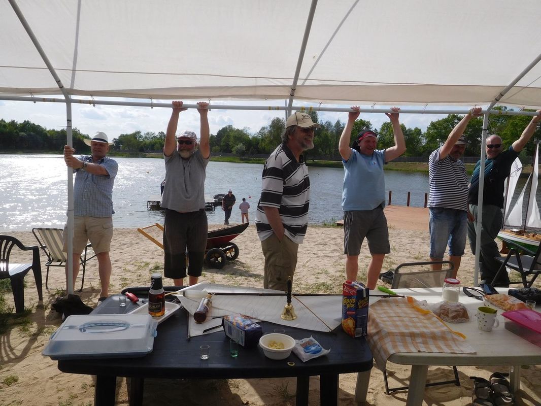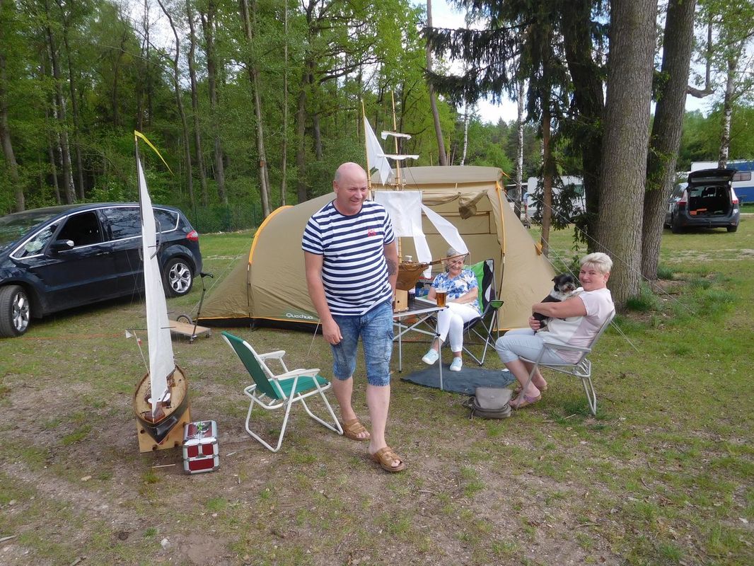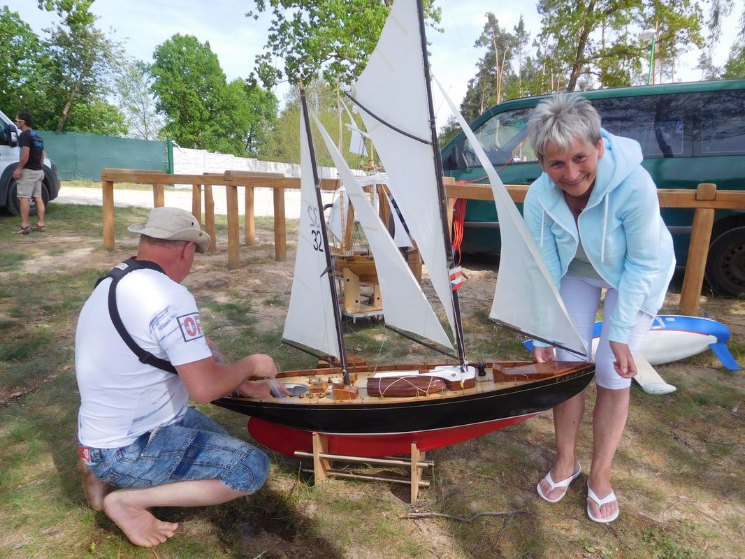 Každé naše setkání je o lidech a lodích. První, koho jsme na bráně kempu potkali, byl Petr Bašek a tak bylo jasné, že po letech na vodě uvidíme i jeho Lizzie May. Petrovi vyrostli děti a tak se nám při strojení své lodě pochlubil, že už mají první modelářské krůčky za sebou. Zatím tedy destrukční, protože kombinace nůžek v dětských rukou a lanoví na lodi je nebezpečná kombinace. Nakonec i sestavení lodě pro jízdy po letech je náročnou disciplínou. To můžeme mnozí jistě potvrdit a prošli jsme si tím o týden dříve.