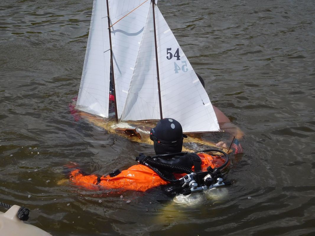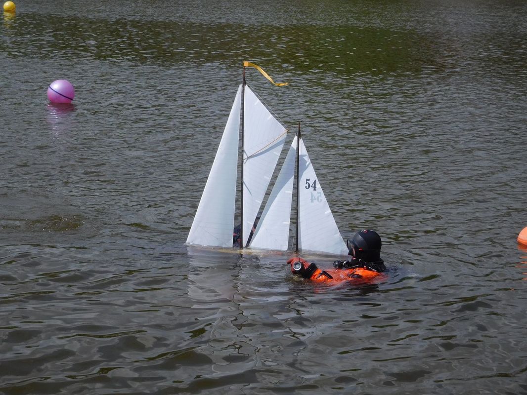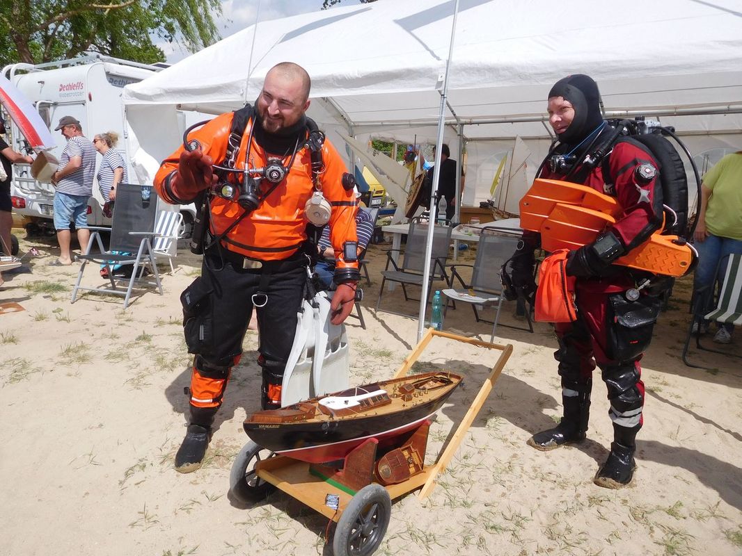 Páteční den byl také dnem, kdy se Vráťovi „zase“ utopila Vamarie. Měli jsme tak bohužel opět možnost vidět práci potápěčů. Je to již potřetí v řadě, když připočtu i podzimní Těrlickou plachtu. Věřím, že to bude na delší dobu poslední takové zpestření našich soutěží. Potápěči jsou kluci šikovní a opět nám zachránili model, který byl nalezen v cca sedmimetrové hloubce. Druhá Vamarie (Wojsiecha Huka) však na vodě vydržela po celý víkend.