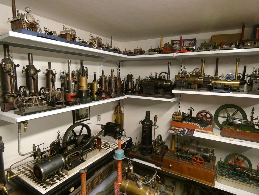 Návštěva vyvrcholila vstupem do místnosti, kde na policích byly vyrovnány desítky malých parních strojků, vše napucované a funkční. Na stěnách byly pověšeny také mnohé další věci k tématu, zejména didaktické pomůcky pro žactvo, vysvětlující funkci parního stroje, Wattova regulátoru atp. Podle vyprávění pana Tomka jeho vášeň pro parní stroje začala právě jedním takovým strojkem, darovaným k narozeninám. Zápisem do knihy návštěv jsme poděkovali a pozvali jej na nedělní regatu. Cestou zpět jsem přemítal, jak je možné to vše stihnout ve dnech, které mají pro všechny stejných dvacet čtyři hodin. Jedno vysvětlení mne napadlo, když nám pan Tomek ukazoval věžní hodiny ve venkovní výstavní síni. Prostě si hodiny zastaví a jde se věnovat svým zálibám. Až se jich nabaží, dloubne do kyvadla a čas běží dále…