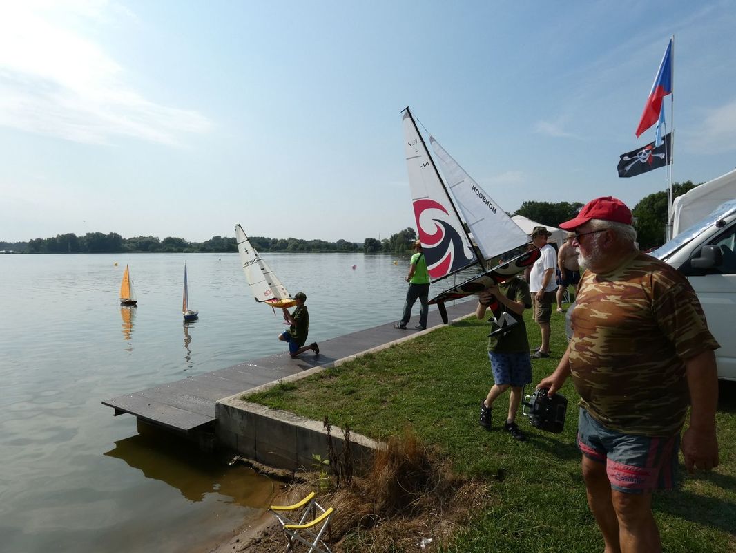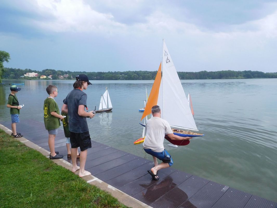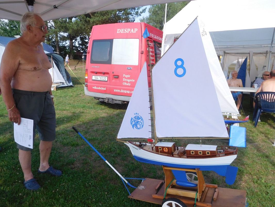 Nedělní regata zakončila celé setkání. Následovalo skládání stanů, nakládání na vozík, kterého se zřejmě naposledy zúčastnil Miloš – Kuba. Po mnoho let spolu s Hankou odváděli skvělou práci pro naše společenství. Nejenom na soutěžích ale také servisem v pozadí, kdy doma sušili a opravovali stany, značili tyčky, vymýšleli zářivkové osvětlení… Na soutěžích Kuba zase obětavě a s velkou praxí obsluhoval člun, zachraňoval naše modely a pomáhal rozhodčím. Bohužel rozdělenost celé společnosti se zkopírovala i do naší malé skupinky a hloupé prosazování osobních náhledů na dění ve světě, mnohdy s cílem zbytečně někoho druhého popíchnout či vyprovokovat, už pro něj byly nad jeho míru únosnosti. Tak se rozhodl, že svůj čas nadále nebude spojovat s námi. Myslím, že nám na setkáních bude chybět. Třeba se to ještě změní.