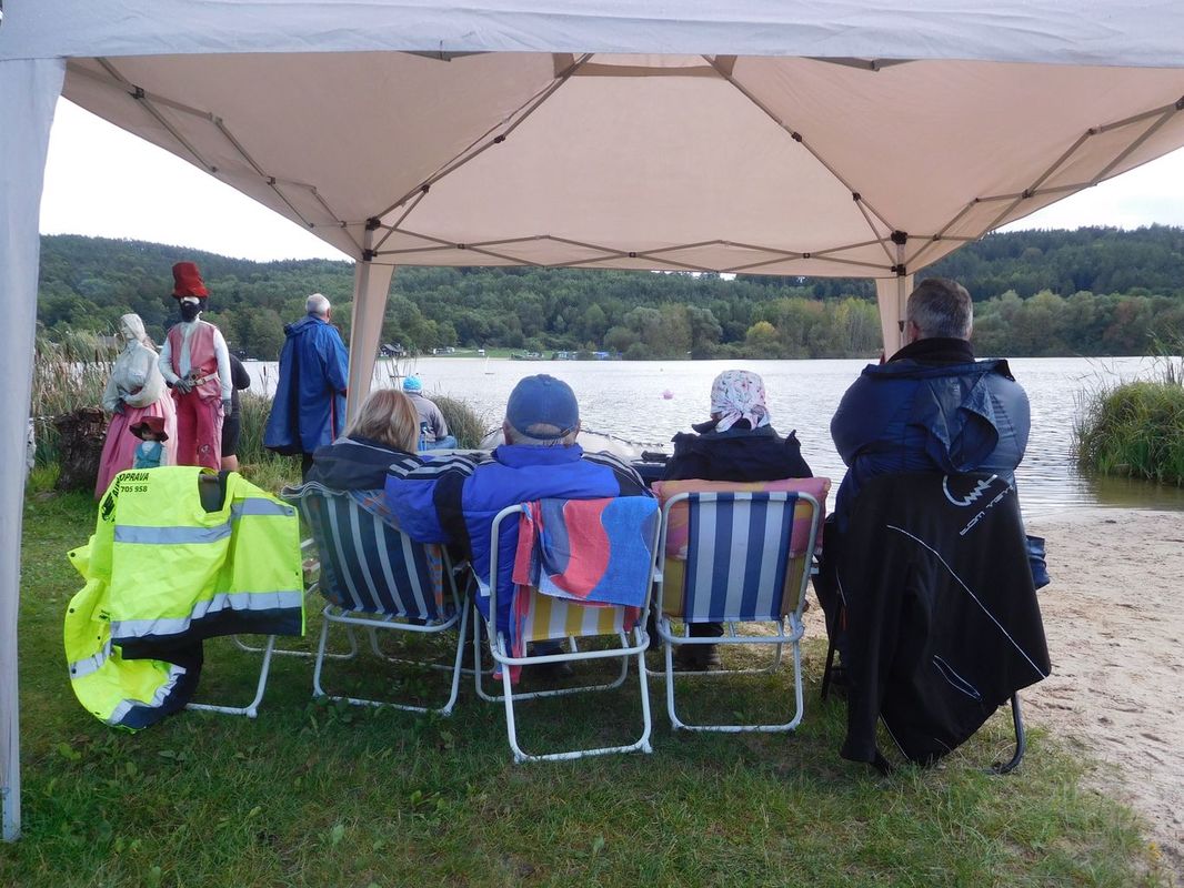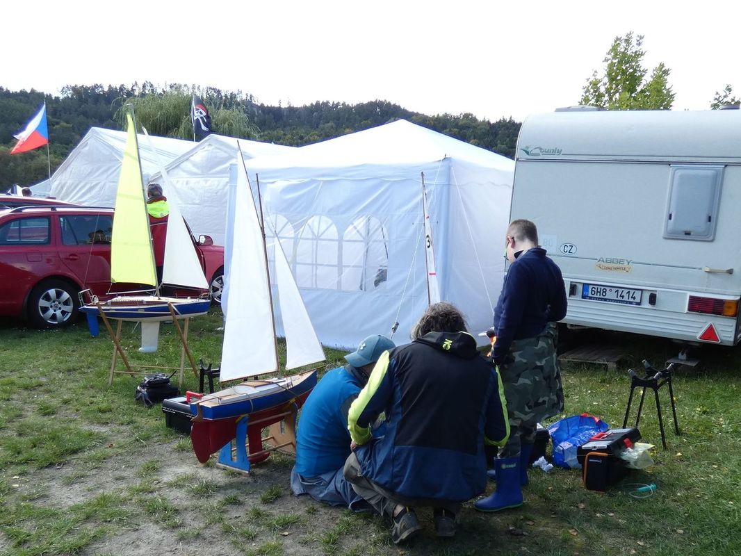 Celkově se závěru sezóny účastnilo 25 lodí (14A / 11B). Bývaly silnější ročníky. Nakonec to možná bylo dobře, protože během let se zhoršují prostorové podmínky pro plachty v Jinolicích. Břeh je stále více a agresivněji okupován karavanisty, kteří si karavan povýšili na chatu. No a u každé chaty přeci musí být oplocení, molo pro obyvatele chaty a tak se výrazně zúžil vstup do vody. Naštěstí prostor na louce pro naše dva velké stany zůstal volný. Vstup do vody je navíc lemován vysokým rákosím a vyzdoben množstvím čarodejnic a postaviček z večerníčků. Naštěstí se hráběmi a velkým úsilím podařilo vyrovnat pískový vstup do vody, který děti přes letní sezónu kempu opatřily velkým a hlubokým lavorem. No, prostě to tak je…