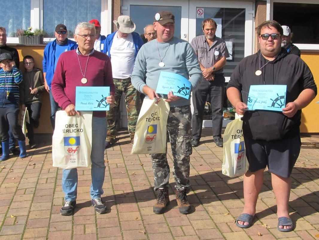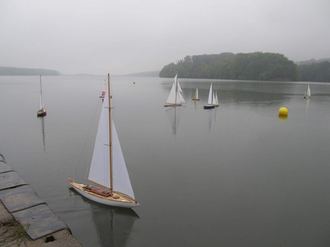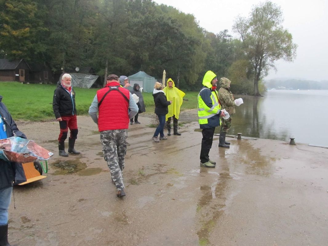 Pátečního postupného sjíždění a závodění v narůstajícím počtu modelů jsem se bohužel neúčastnil, z vyprávění a fotek ale vím, že jsem o mnoho nepřišel. Většinu dne bylo mezi 10 a 15 stupni a pršelo, ani vítr se moc nedostavil. Přesto se snažilo kroužit asi 6 plachetnic NSS a řady posílilo i několik moravských závodníků s RG-65. Po zkušenosti z minulého roku byli na startovišti v pohotovosti i místní potápěči. Díky klidnému až žádnému větru se ale žádné práce v pátek, ani po zbytek víkendu nedočkali. Po sobotním ranním příjezdu jsem byl tedy svědkem jen vyhlášení vítězů o Těrlickou buchtu, tentokrát také v trochu jiné podobě – pekařce se nedávno narodil potomek, takže nebyl čas na pečení a závodníci tedy dostali směs na pečení buchty a povidla k vlastní výrobě.