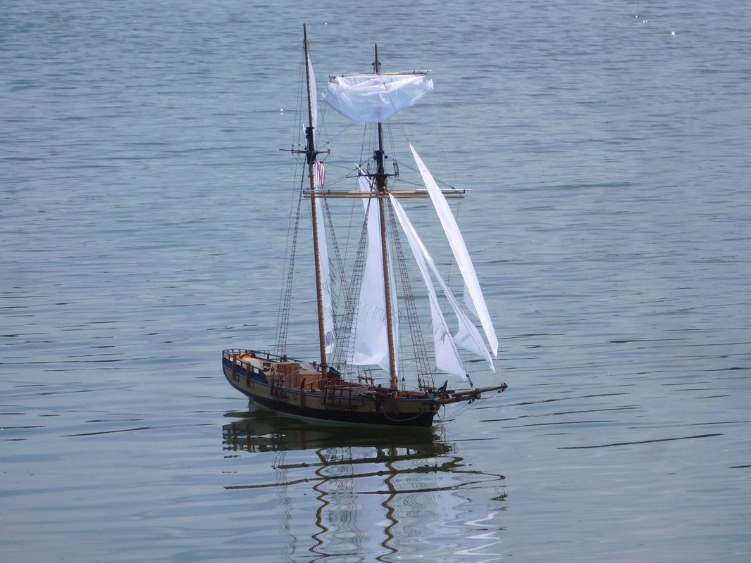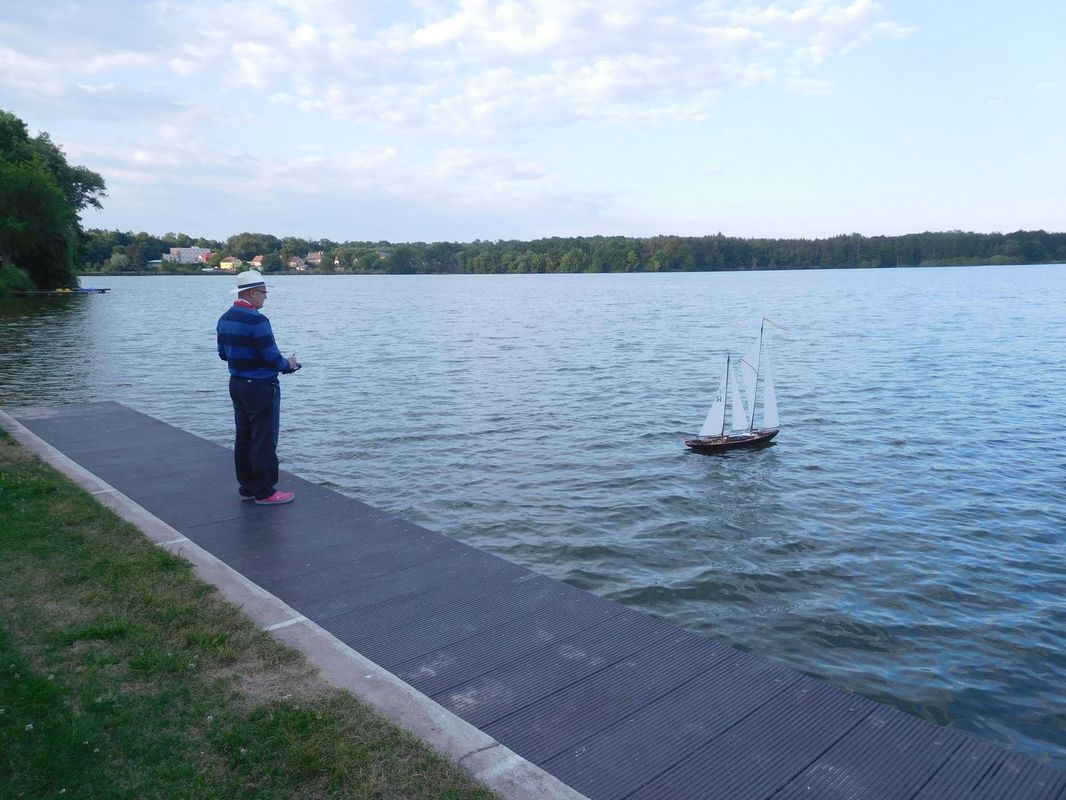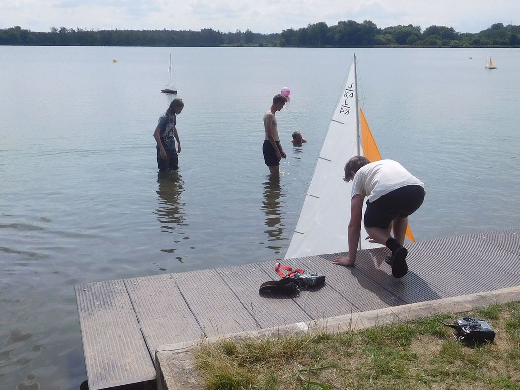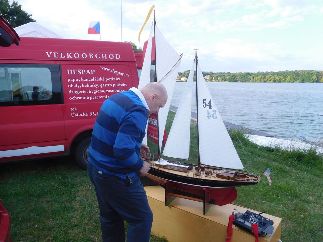 V neděli ráno si vítr přispal, a když se v plánovaný čas regaty dostavil, přišel z neočekávaného směru. Tedy od protějšího břehu, kdy má možnost se nad hladinou srovnat. Takže regata proběhla svižně a ti, kdo se jí účastnili, měli možnost si přeleštit trupy svých modelů.