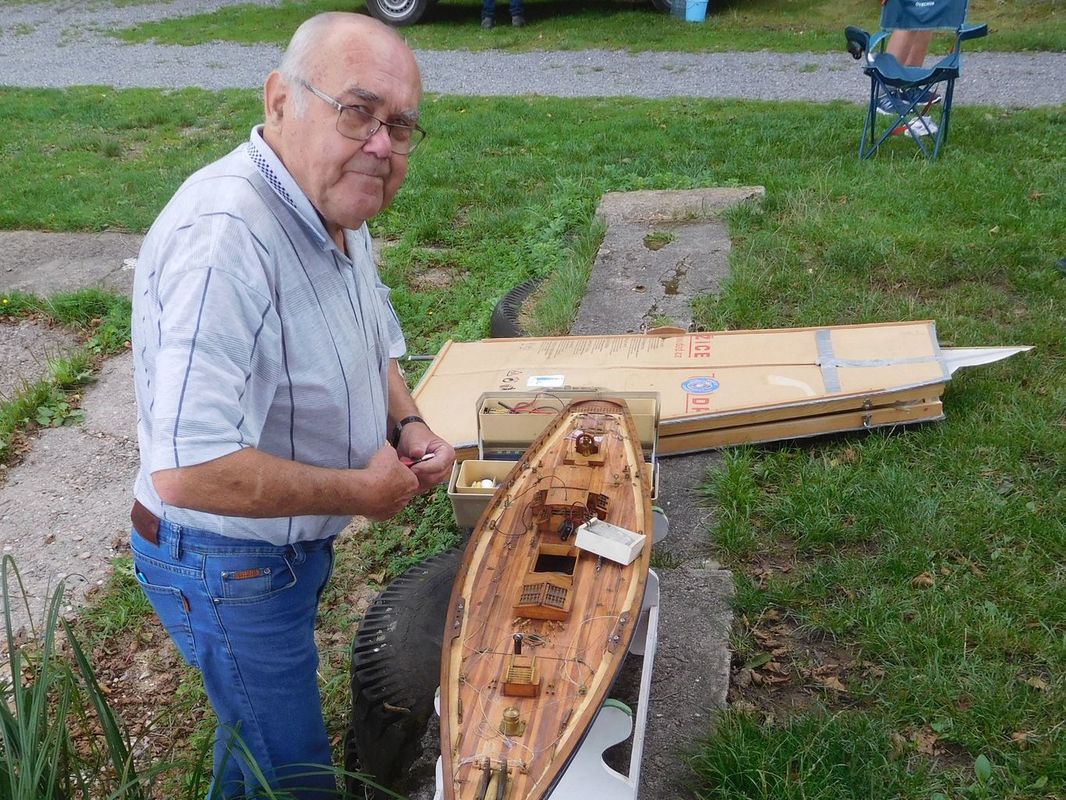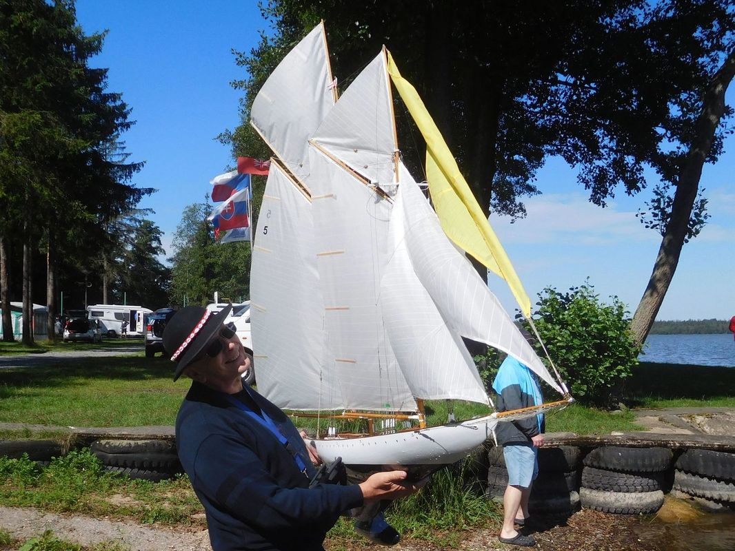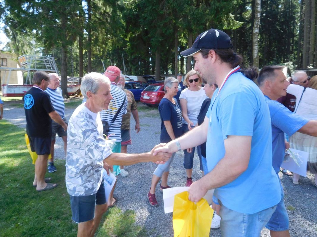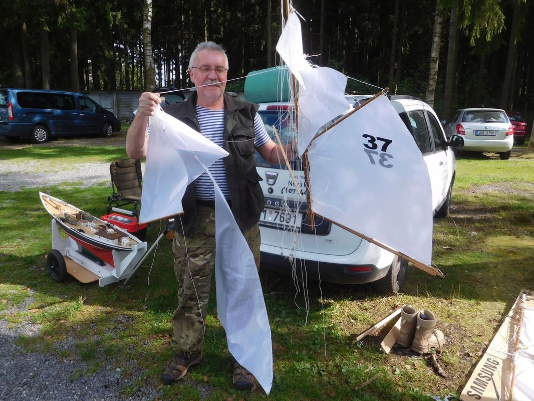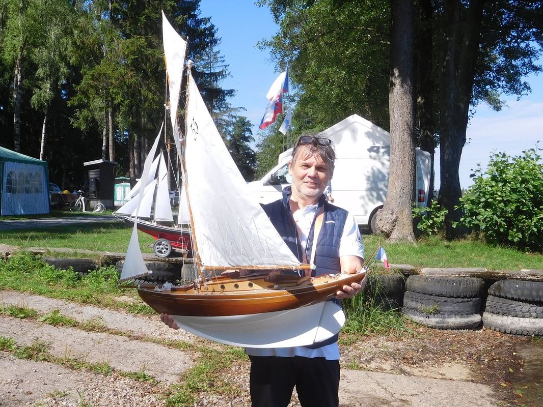 Malá vsuvka: v pátek při dokumentování akce měl Pepa nápad vyfotit každého závodníka s jeho lodí. Skoro se mu to povedlo, jediný, kdo se momentce se svým modelem vyhnul (ač asi neúmyslně), přestože už byl v pátek s námi, byl Pavel Urbančík. Pepa se tímto Pavlovi omlouvá, že ho nechal proklouznout 😊😊.