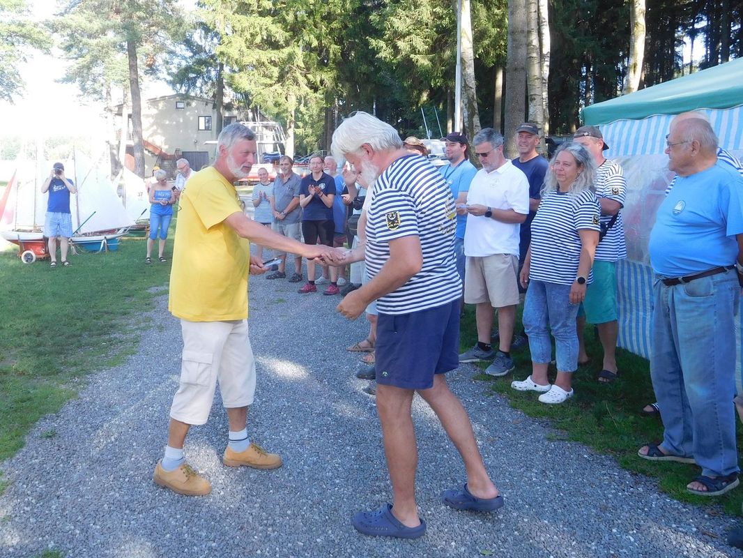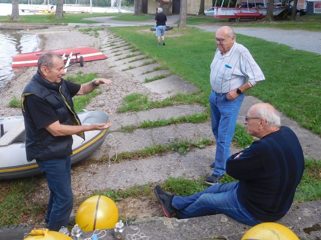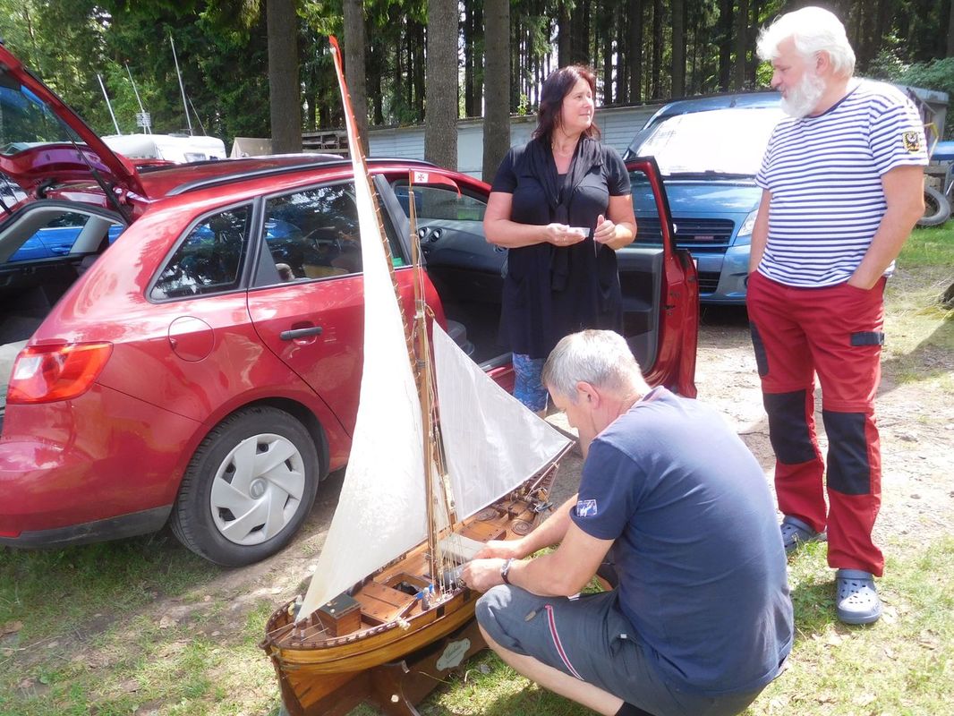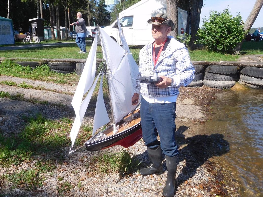 V průběhu dne přijeli kamarádi penzisti nebo ti, kteří si mohli v pátek vzít dovolenou. A také došlo k obchodu sezóny. Byli jsme totiž překvapení, když Pavel Macháček začal strojit Doriana, protože přihlášený byl s Helen B. Thomas. A ještě víc jsme byli překvapení, když jsme zjistili, že Doriana strojí pro Láďu Doušu, který ho od něj koupil. Teď tedy budu předbíhat, ale musím to napsat. Dorian opravdu jezdil, takže zvedl Láďu ze židle, a on při jízdách chodil s ostatními po břehu. A myslím, že i díky tomu neskončil na posledním místě (jak byl zvyklý). Tleskám mu 😊.