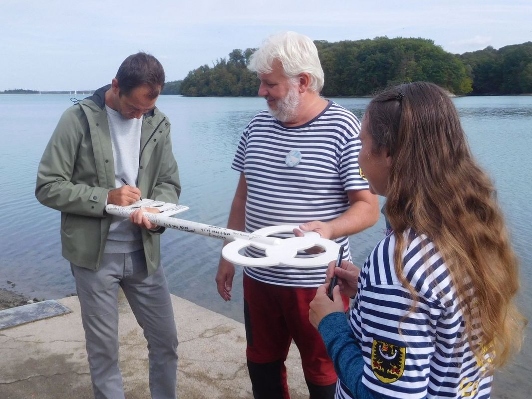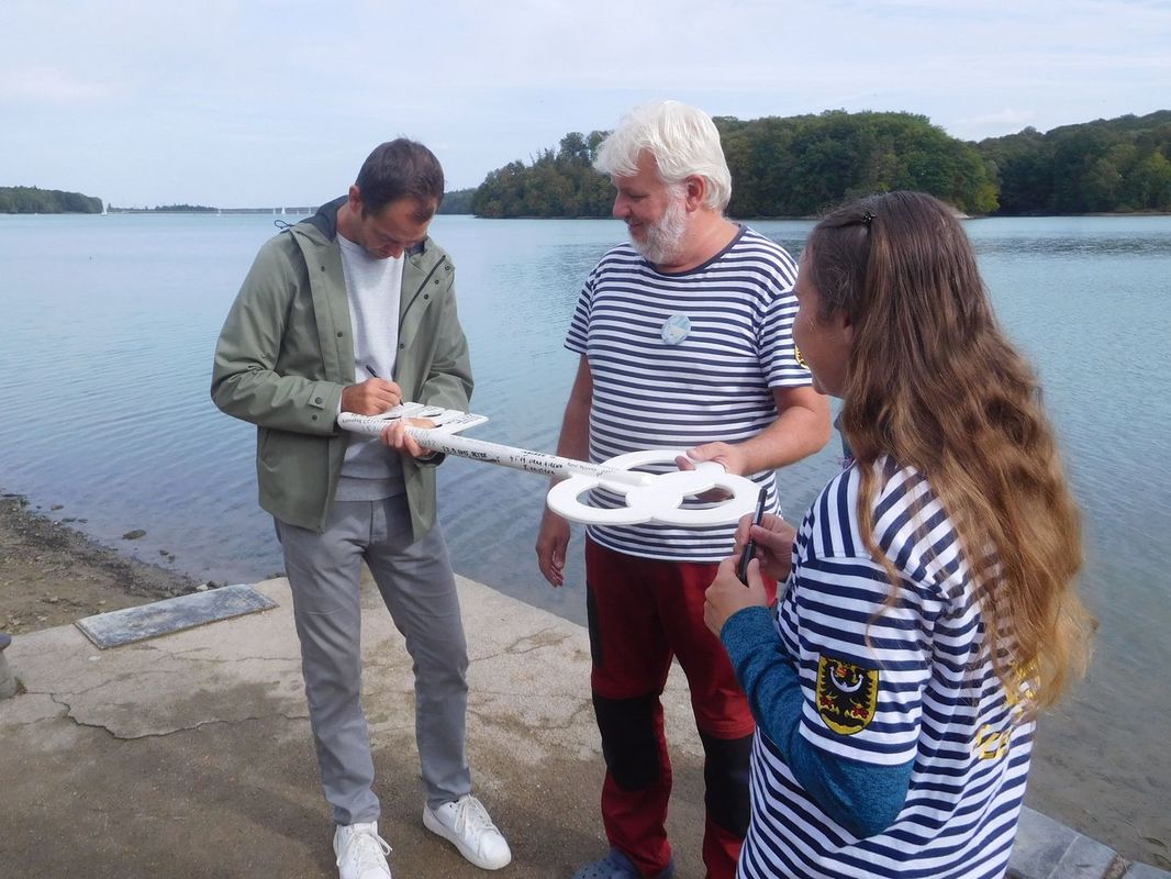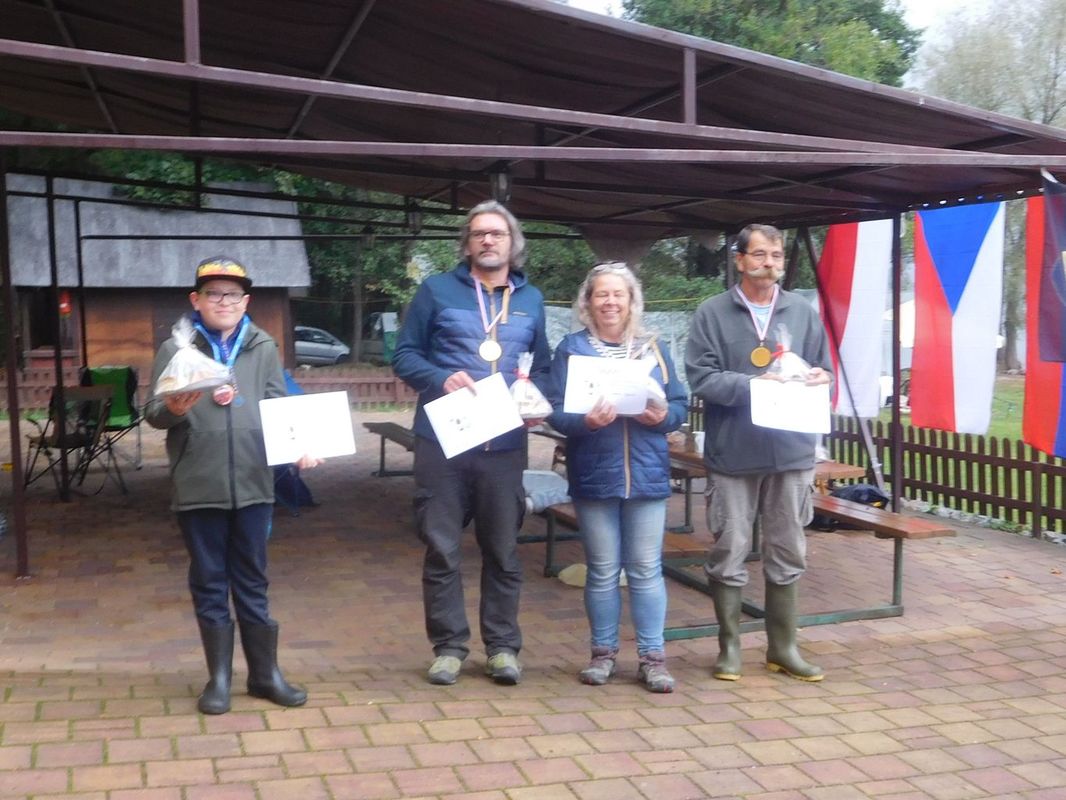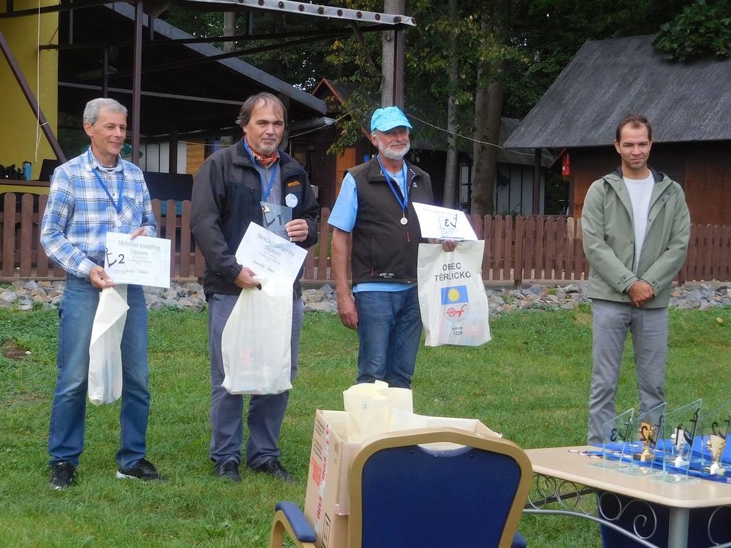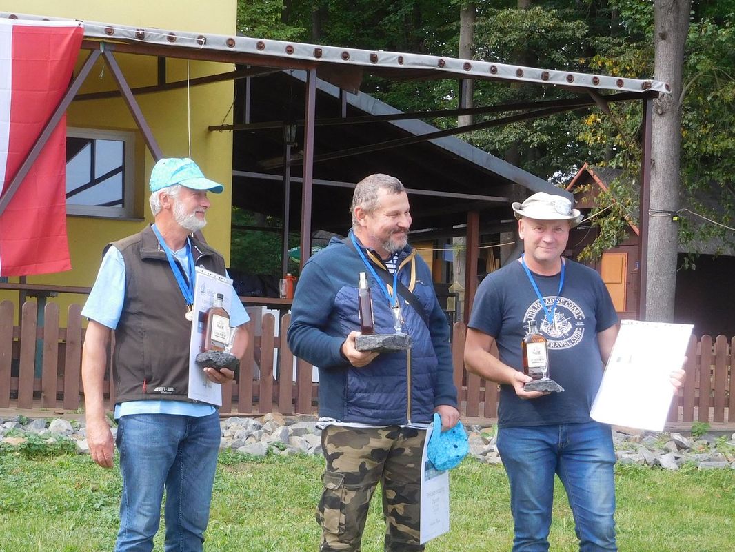 Po jedné hodině nastalo vyhlášení vítězů se zde tradičním samostatným oceněním juniorů, byť minimálně zastoupeným, letos jeden polský od Bohdana Sliwy a tři místní junioři, které snad opět uvidíme na dalších českých soutěžích. V obou hlavních třídách A a B se ve výsledcích výrazně projevil koeficient jednotlivých plachetnic. V NSS-A vyhrál Bogdan Sliwa, druhý Tomáš Jakeš a třetí Radim Bráblík, u NSS-B do pořadí výrazně zasáhla druhá jízda, kterou řada plachetnic nedokončila, takže vyhrál Stanislav Jakeš (díky těsně druhému místu v druhé jízdě a vítězství v první) druhý Juraj Száraz s novým modelem Malabar I díky výhře v druhé jízdě a třetí Pepa Mrákota. Ostatní výsledky v přiloženém souboru. Při vyhlašování bylo konstatováno, že jsme tentokrát neutopili žádný model, možná díky tomu, že si nás v pátek přišli obhlédnout místní potápěči. Vyhlášení výsledků se účastnil i starosta obce Těrlicko, předal ceny, a nakonec zamkl vodu.