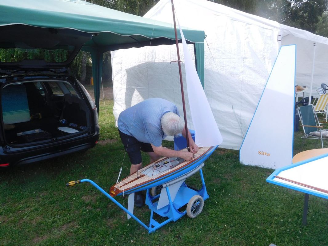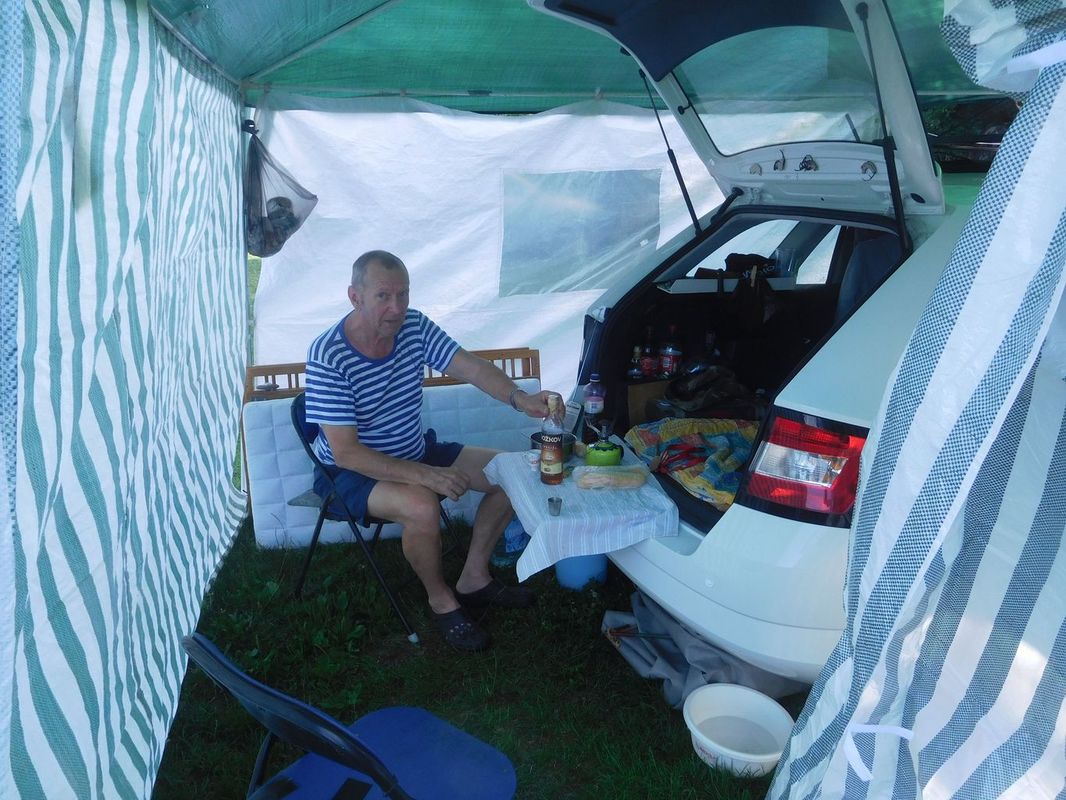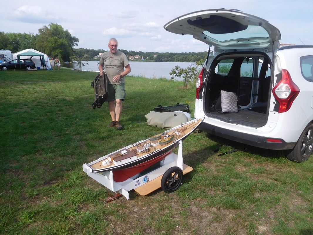 První na místě byl asi Šurda, soudě podle toho, že měl zcela postaveno své stanové zázemí kolem své Fábky a dostrojený svůj Bluenose. Když jsme si před dlouhým časem telefonovali, řešil, jak do tak malého auta dostat svou postel. Myslím, že poté co vyměnil svůj Transportér za Fabii, zažíval stejné pocity, jako když se z rodinné dvoupatrové vily přestěhuje do garsonky. No, ale člověk, který postavil několik kajutových lodí, má spoustu zkušeností a tak výsledek jeho snažení je skvělý. Ke garsonce totiž doplnil zimní zahradu s posezením a letní kuchyní a tak vypadal spokojeně po celé čtyři dny.