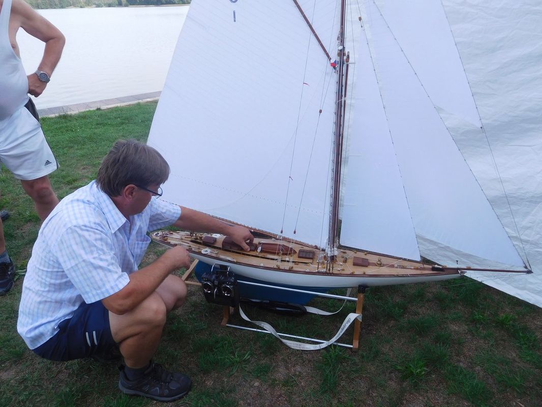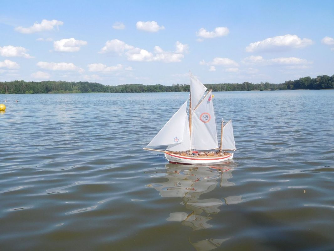 Něco o lodi-předloze (z internetu): V polovině dvacátých let minulého století spatřila světlo světa loď Le Havre o s oplachtěním 12 m², navržená architektem Gastonem Grenierem, z iniciativy společnosti Société des Petites Régates du Havre, kterou v roce 1866 založil pan Lecomte a kterou tvořili milovníci jachtingu na malých otevřených lodích. V poválečných letech se vývoj a stavba tohoto typu lodí ustal. Půl století po spuštění poslední lodi tohoto typu na vodu jich přežil zub času jen tucet, a to ne vždy ve stavu způsobilém k plavbě. V roce 2007 byly překlesleny plány jachty "Solange", kterou navrhl Maurice Bertin v roce 1927, a tři další plány téhož architekta. Ty posloužily jako reference pro návrh nové generace. Konečně v září 2010 byla v Saint-Valéry-en-Caux spuštěna na vodu první z nové generace 12 m², pojmenováná "Sitta", která je směsicí tradice a moderny 21. století. Tato loď, těží z nejnovějších technologických vymožeností a je postavena metodou "strip planking". Linie trupu byly přepracovány z V profilu do U profilu, takže se zvýšila jeho stabilita a změn doznal i tvar kýlu. Plně však respektuje základní idey, technická třídová omezení a oplachtění svých předchůdců. Brzy následovaly další lodě a tak se tuto kategorii, spojenou s přístavem Le Havre, podařilo znovu vrátit na vodu. Snad se v budoucnu na stránkách minisail.cz objeví více obrázků ze stavby modelu. Protože to byla vlastně první plavba modelu na soutěži, došlo k vážení a také k ladění strojovny a plachet. Loď nakonec jezdila moc hezky a má jistě potenciál dobrých výsledků v budoucnu. Za mne mi u modelu chybí přiznaný kokpit, třeba i jen symbolicky ne ve své plné hloubce.