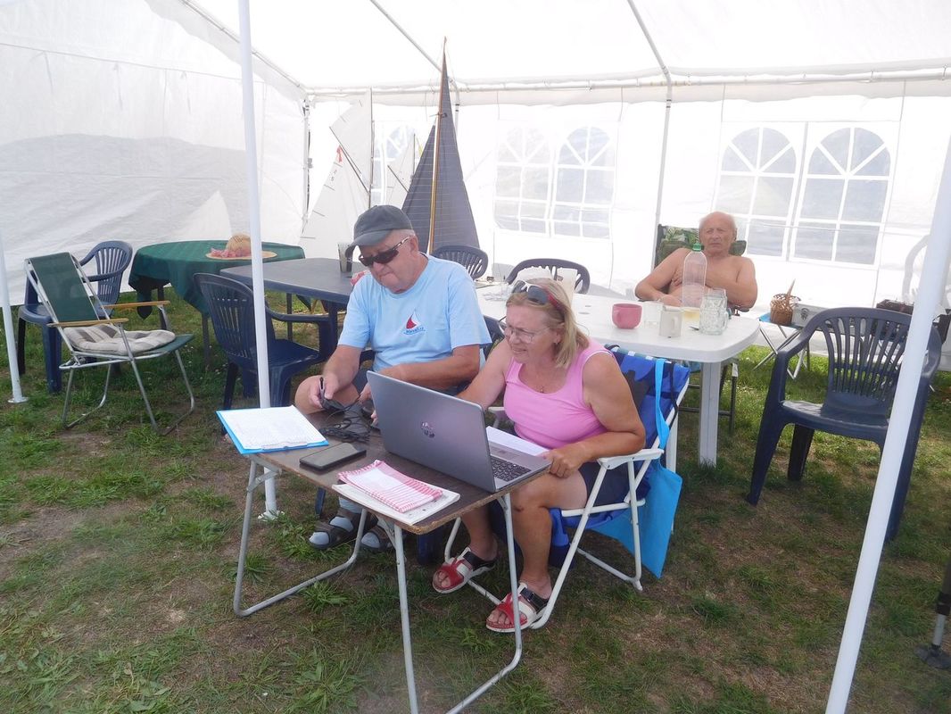Počasí po všechny dny bylo typicky letní, rádi jsme se schovávali do stínu stanu. Tam na nás útočily vosy, kterých je letos přes míru. Vítr byl slabý, někdy až vlastně nebyl a tak velké vysoké plachetnice měly dobré podmínky dominance. Pro všechny to bylo příjemné poježdění, snad i pro Irenu s Vláďou hezké pokoukání na pohyb na hladině. Plavci byli letos hodně odvážní a tak u levé bóje někdy nechávali velmi málo místa pro průjezd lodí. Nicméně s vlídnou domluvou a upozornění, že ty lodičky mají přes deset kilo, se nakonec vždy nějaký „průplav“ otevřel.