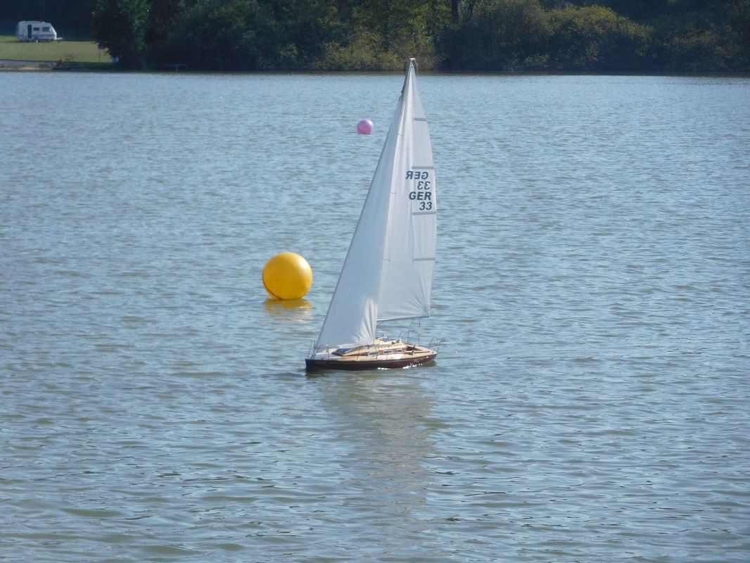 Jelikož jsem v takovém počasí parník ani nevyndal z bedny, zkusil jsem to na vodě s Footynou. Jela, ale byla spíše hříčkou přírody, než abych jí ovládal. Po 5 minutách jsem zamířil ke břehu, zajásal, že v ní není voda a spokojeně odložil. Druhého dne ráno jsem po zapnutí zjistil, že se strhlo ozubení na servu kormidla. Asi to byl zázrak, že k tomu došlo až po poslední obrátce ke břehu a malá plachetnice se nevydala kilometr na druhý břeh rybníka u Kempu Moře.