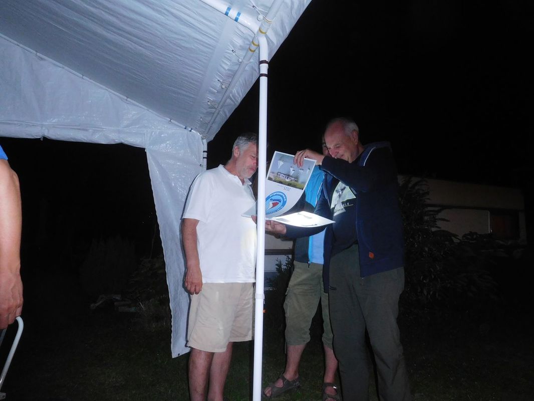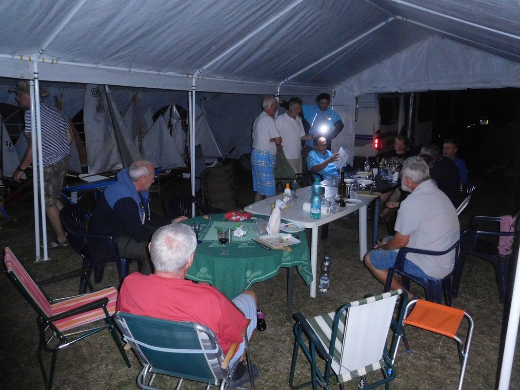 Vráťa si přivezl plachetnici Micro Magic, která si v silném větru vedla dobře. Takže se u stolu rozvinula teoretická debata, jak by se asi srovnala s velkými modely po přepočtu výsledků koeficientem. Ten jsme spočetli na místě a vyšel 0,777. Na praktickou zkoušku ale samozřejmě nedošlo. Nicméně z výpočtu koeficientu se stalo i večerní téma. Šlo o to, zda použitý vzorec nějak limituje minimální a maximální číselnou hodnotu Rlog. Tak to chvíli u stolu vypadalo jako na zkoušce z matematické analýzy, když „proti sobě“ stáli Standa a Láďa, každý s trochu jiným názorem.