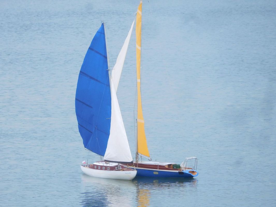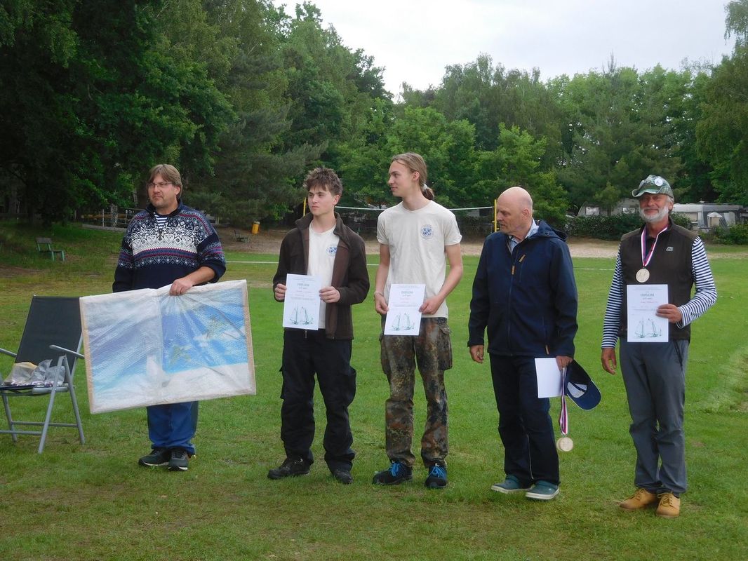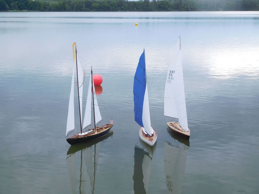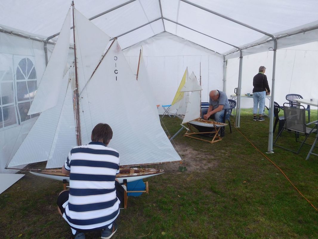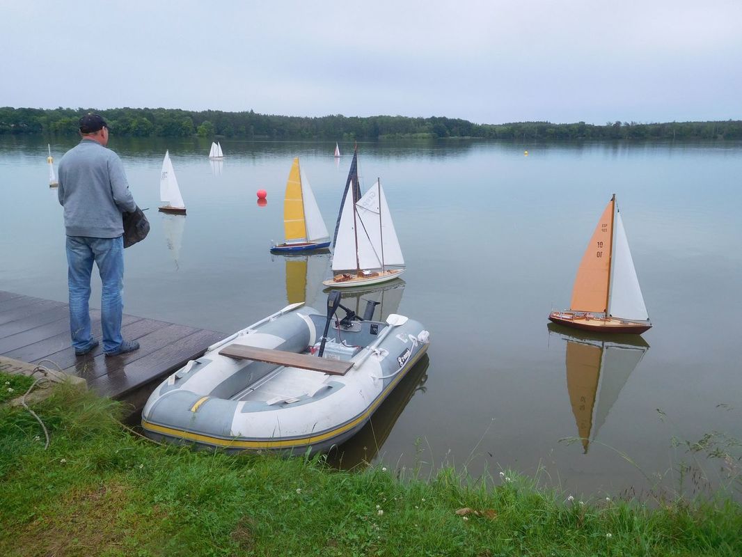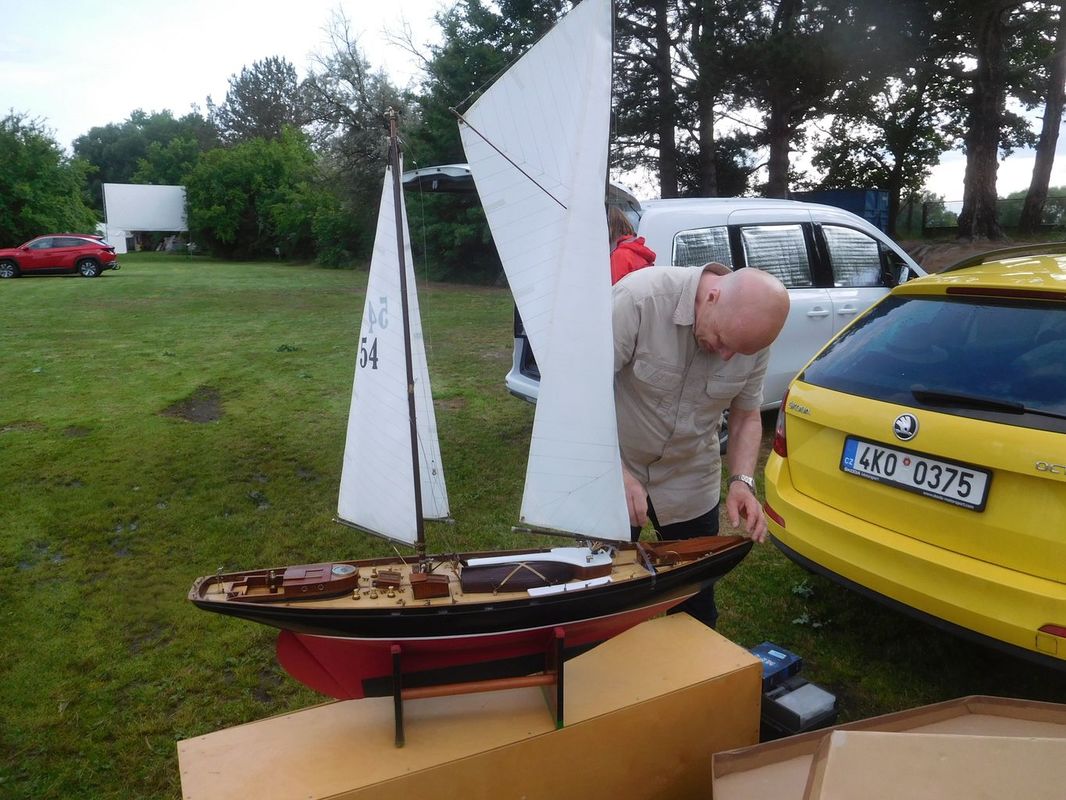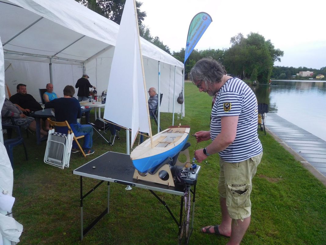 V pátek večer jsem musel s Martinou odjet, takže jsem již nebyl u příjezdu jabloneckých juniorů, ale podle předaných informací ještě večer sestavili plachetnice a krátce je vyzkoušeli na vodě. V sobotu ráno už před devátou hodinou startovali do první jízdy. Moc nefoukalo, takže jeli na tři kola polovičního trojúhelníku. Kromě juniorů dal večer na vodu nový model, ne zcela dokončené plachetnice ze stavebnice, Pavel Strenk.