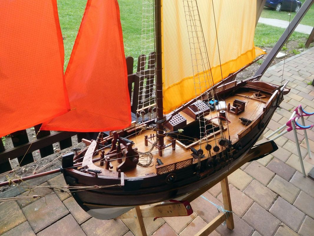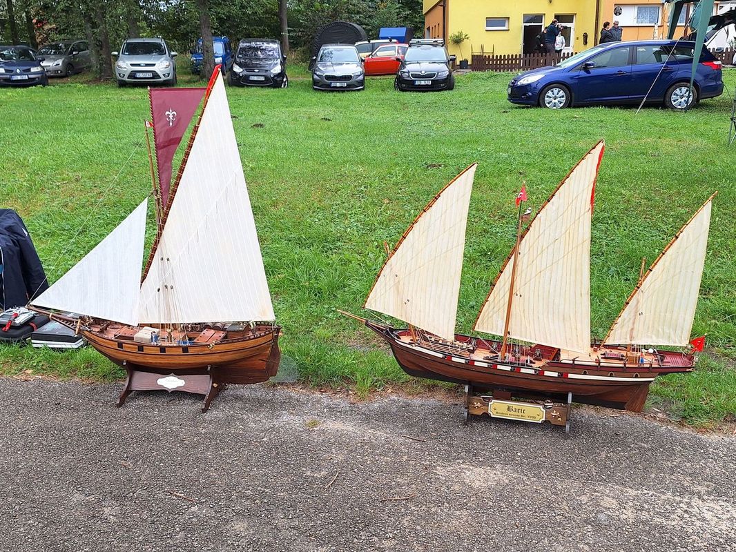 V sobotu ráno přijeli zbývající modeláři. Namátkou třeba Jakešovi, Urbančíkovi, či Pavel Mrázek. Pavel Urbančík mě překvapil pohyblivými figurkami na palubě své šebeky Barie. Na vyvýšeném pódiu tam na pohovce ležel nějaký paša, ze dvou stran jej ovívali sluhové a před ním se kroutila břišní tanečnice! Hotový mechanický betlém.