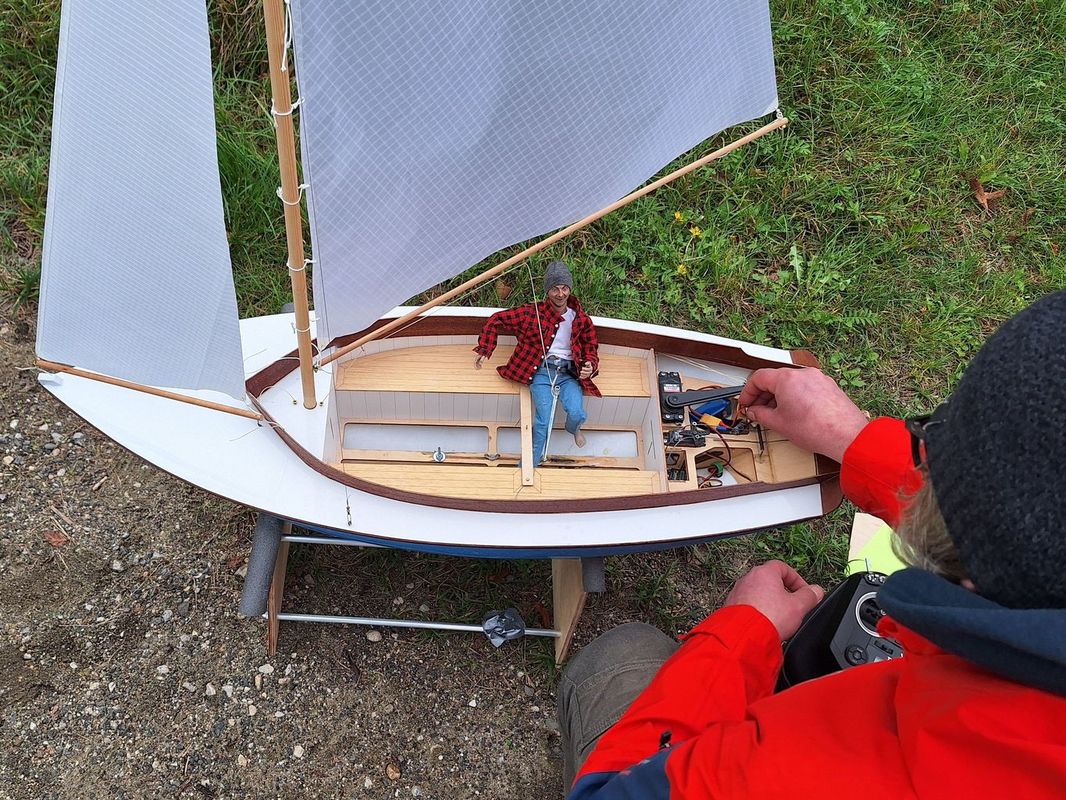 Při první rozjížďce jsem měl opět technické potíže. Náhle mi vysílačka začala pípat a hlásit ztrátu telemetrie. Dorian si to zamířil na samostatný průzkum Těrlické přehrady. Asi se chtěl také seznámit s novou vodou. Chudák René pro něj musel doplout ve člunu až na protější břeh. Ještě jednou děkuji za záchranu. Po prohlídce lodi jsem usoudil, že ke ztrátě signálu došlo kvůli zoxidovaným kontaktům u baterie a vypínače. Zdá se, že elekronika nemá ráda dlouhodobý pobyt ve vlhku. Baterku jsem tedy vyměnil za jinou a v klidu dojel mezi posledními první rozjížďku.