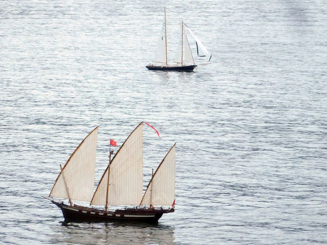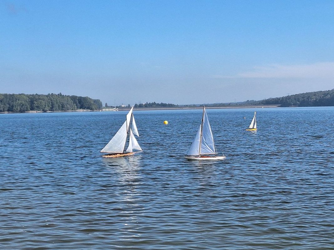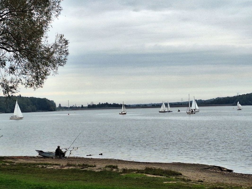 Během poslední rozjížďky za toho hrozného bezvětří nám dělaly na hladině společnost skutečné plachetnice. Blíže k hrázi měly také nějaký závod. A také jim to moc nejelo, stejně jako nám. Ale byla to krásná podívaná.