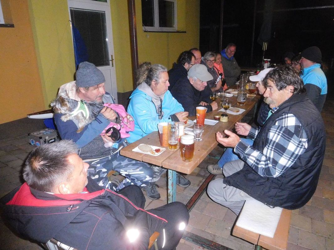 Pak už začala volná zábava. Rozpálil se gril a také se tu objevil kuchař Kuba a začal se věnovat přípravě guláše. Večer plynul za příjemného povídání nad grilovanými klobásami a pivem. Nebo vínem, každý podle své chuti. S přicházející nocí lidí postupně ubývalo, jak odcházeli spát. Nejvytrvalejší vydrželi u stolů až do půl druhé ráno. Kuchař a spol. snad nespali vůbec a hlídali guláš. Nevím.