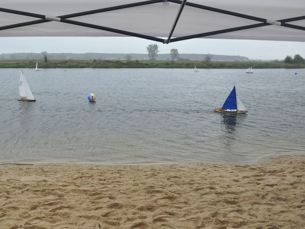 Odjezd tedy již v tradiční 2:00, byť páteční večerní telefonát do Pinczowa vedl k zahájení až v 10:00. Cesta byla tentokrát zpestřena skoro celonočním deštěm. Předpověď slibovala drobný déšť i během dne, ale i s větrem 5-7 m/s, na který se těšil Tomáš Jakeš. Vydrželo pršet skutečně až do rána, takže v lesích před Wolbromem bylo jen občas nějaké auto s houbaři zabalenými do pláštěnek, oproti jindy plnému lesu. V Pinczově skoro nepršelo, ale postupně během dopoledne se mžení proměnilo na slabý déšť. Vítr skutečně hodně foukal, okolo 5 m/s trvale s poryvy až k 7 m/s. Na krátkém zahájení v 10 h byly představeny zde tradiční skupinky na rozjížďky. Nejprve NSS 650 (obdoba RG 65, ale jezdící na více kol, v tomto případě vždy cca půlhodiny trvající), konkrétně dvě rozjížďky po sobě a pak tedy cca v 11 h NSS open – tedy NSS-A, NSS-B a samostatně vyhodnocovaný Sun Fish pohár (NSS-C). V NSS 650 se sešlo asi 8 seniorů (šlo to celkem špatně spočítat, protože v silném větru většina nevydržela) a 3 junioři. Měli zmenšenou trať cca rovnostranný trojúhelník s jen jednou stranou proti větru, kde museli křižovat. Ti méně zdatnější se v silném větru i několikrát posunuli vzad ke startovní bóji, než se přiblížili k první bóji a otočení se dále po větru. V NSS open první jízdu vzdali dva přítomní modeláři se Sun Fishem, takže nastoupilo 8 modelářů, z toho jen jeden z Polska – Marek Stala a jedna česká juniorka Veronika Kotlárová.