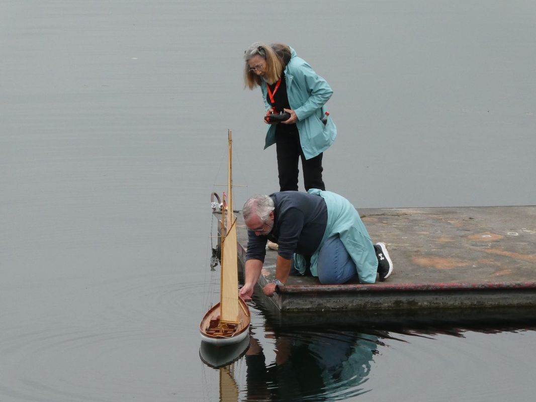Předně bylo zapotřebí dostat modely k vodě a na vodu. K vidění tak byly nejrůznější vozíky. Někteří s nimi zajeli jen na břeh, jiní je využili až na molo, které vybíhalo asi 30 metrů do vody. Nájezdová rampa na toto molo o několik metrů klesala, a tak jsem Bluenose donesl na molo bez vozíku a nemusel se pak starat o vozík a řízení plachetnice naráz. Je zapotřebí si uvědomit, že startovní čára začínala hned na špici mola, takže se na poměrně malém prostoru chystalo asi 40 plachetnic najít nejlepší pozici před startem. Jakmile se zdálo, že jsou všechny na vodě, Borek odpočítal start. To bylo téměř naposledy, kdy jsem ho viděl. Následně mi zmizel s čelem pelotonu pod prvním mostem. Pod tím se nechalo po velkých balvanech ještě projít, pod dalšími mosty již ne.