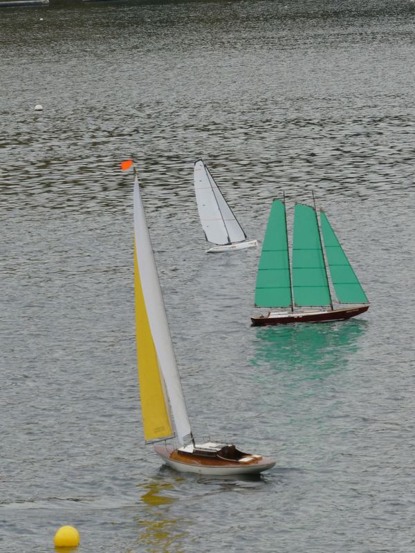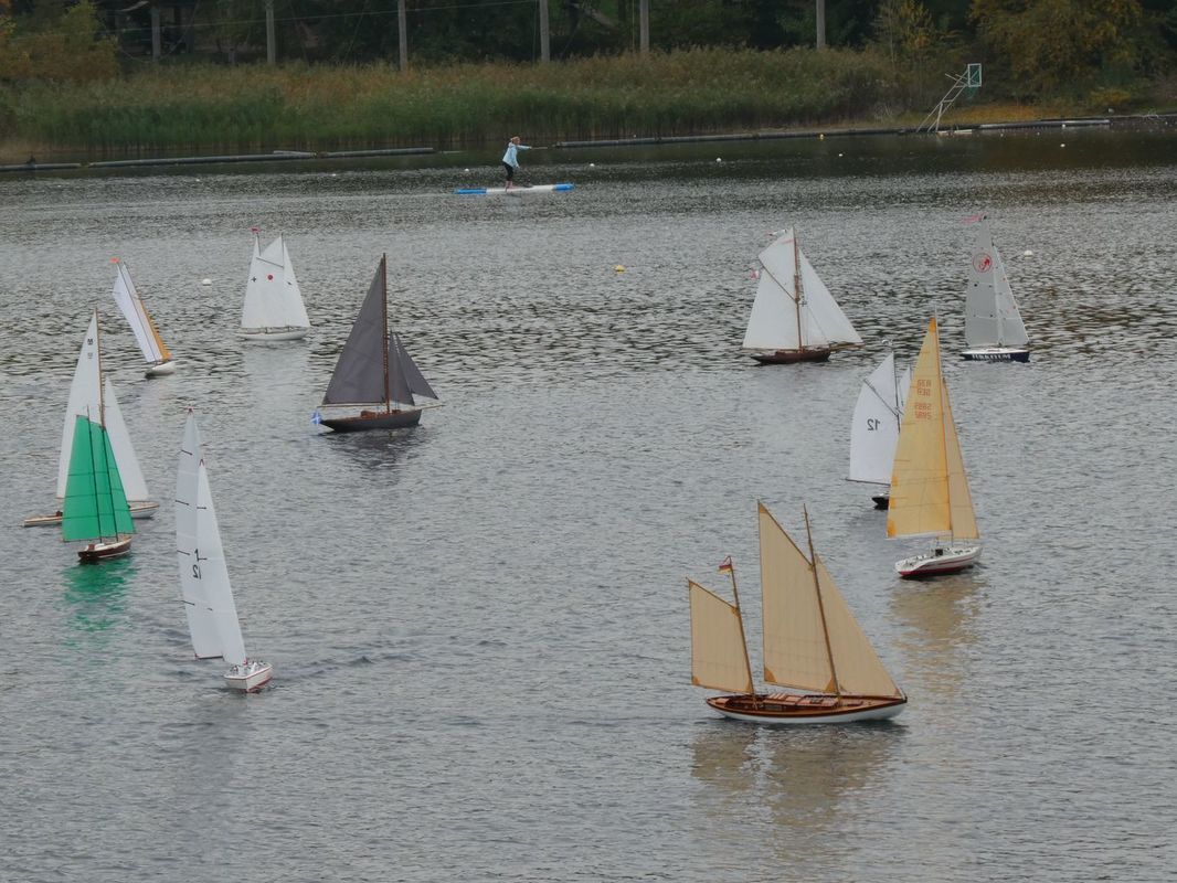 Tato menší trať dokonale ukázala, jaká je to podívaná, když se tolik modelů naráz vydá k první bójce. Přestože kromě dvou zapisovatelek žádný rozhodčí na závod nedohlížel, kolizí bylo minimálně. Svážecí člun, jehož přivolání bylo jednodušší, měl více práce spíše s neposlušnými modely. Při předcházejících regatách kolem ostrova totiž takový model rychleji najel na některý z břehů, než svážecí člun po přivolání mobilem dorazil. Přesto obsluhu obdivuji, sám bych po sobotních 4 hodinách na pramici už nevěděl, jak si sednout.