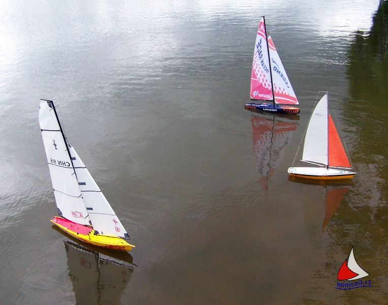 Pokud jde o soutěžní trojúhelník, byl oproti Plzni větší a obsahoval jednu zajímavou překážku, kterou bylo plovoucí molo, které nový provozovatel kempu instaloval asi patnáct metrů od břehu. Zde je vhodné se zmínit o tom, že se letos startoviště plachetnic přesunulo o dvacet metrů vpravo na místo, kde jsme vloni byli trpěni pouze při spouštění modelů na vodu z mola dalšího startoviště. To se letos posunulo do kempu a na nás zbyla celá „pláž“. Akorát jsme byli v obavě, že v případě příchodu plavců budeme muset prostor uvolnit.