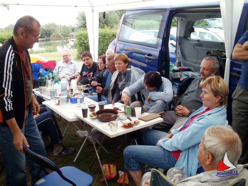 Největší smůlu celého klání si vybírá Peter Kozák, když při vyndavání lodi z vody po ukončení regaty praská molo a Peter s vysílačem a obsahem kapes končí ve vodě. Ve dvanáct hodin je vše odjeto, rozebíráme lodě a Jarda vyhlašuje výsledky, všichni se loučíme a odjíždíme domů.Jardo, akce byla super, nálada byla úžasná. Nezbývá než poděkovat TOBĚ a klubu vodních sportů, jen doufám, že v restauraci bude za rok lepší sestava.