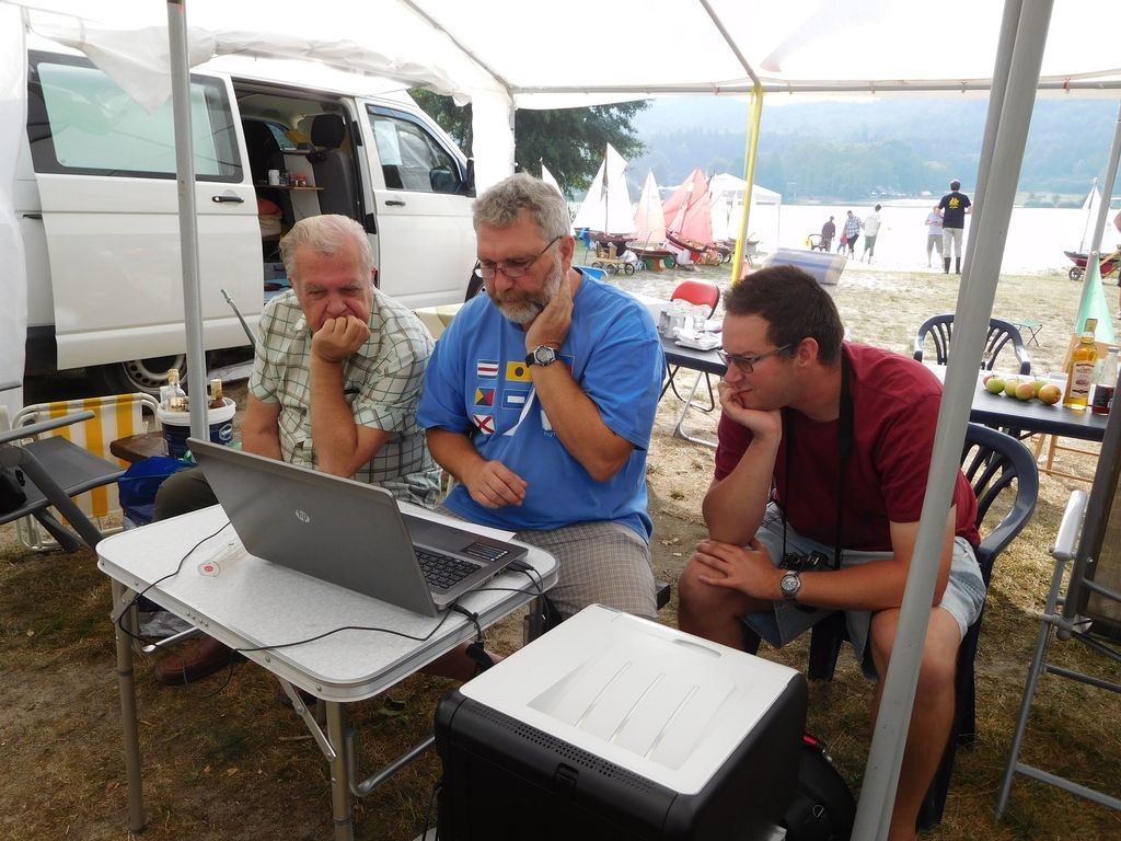 Sobotní den nezačal deštěm, jak se očekávalo a to mnohé znervózňovalo, kdy už to příjde. Doba internetová přináší meteoradary a Aladiny a tak bylo každou chvíli jasné, že kolem prší, jen nad Jinolicemi po nebi pluly zachmuřené mraky. Tím, že jsem napsal, že mraky pluly, je jasné, že docela foukalo a to hned od brzkého rána. Tak jsme mohli začít jízdy 5. seriálovky dříve než v naplánovaný čas. Po pátečních pomalých taktických jízdách si v sobotu užili i kapitáni lodí, které prostě potřebují vítr. Jízdy se tak odjely ve svižném tempu a i přes půlhodinový déšť se na závěr podařilo zařadit i nedojetou jízdu NSS-B ze soutěže čtvrté. Po dohodě s kapitány postýlek, jak se říká vícetrupým NSS-D, se jejich třetí jízda ze čtvrté soutěže anulovala, aby bylo možno zpracovat kompletní výsledky obou seriálovek. Slavnostní vyhlášení pak proběhlo ve stanu v osm večer. Zůstávalo jen dopočítat finální výsledky seriálu a odjet závěrečnou regatu.