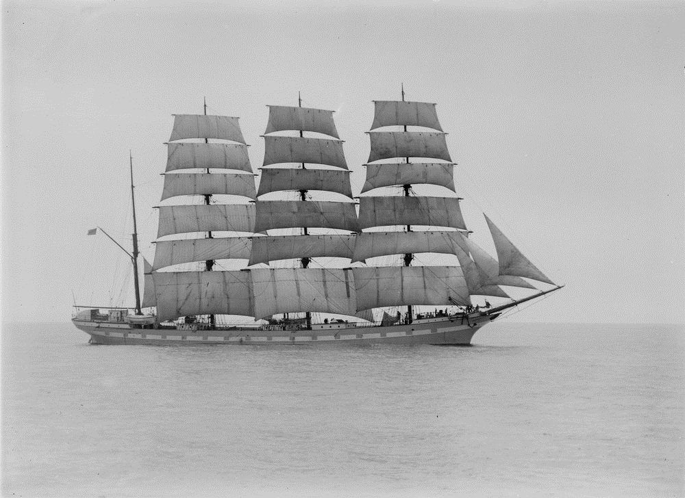 4. Jedna z velkých komerčních lodí Magdalene Vinnen (dnes ruský Sedov) je z roku 1921. Klasické oplachtění s královskými plachtami je doplněno „německým“ řešením vratiplachty (spankeru), který je zdvojen.
