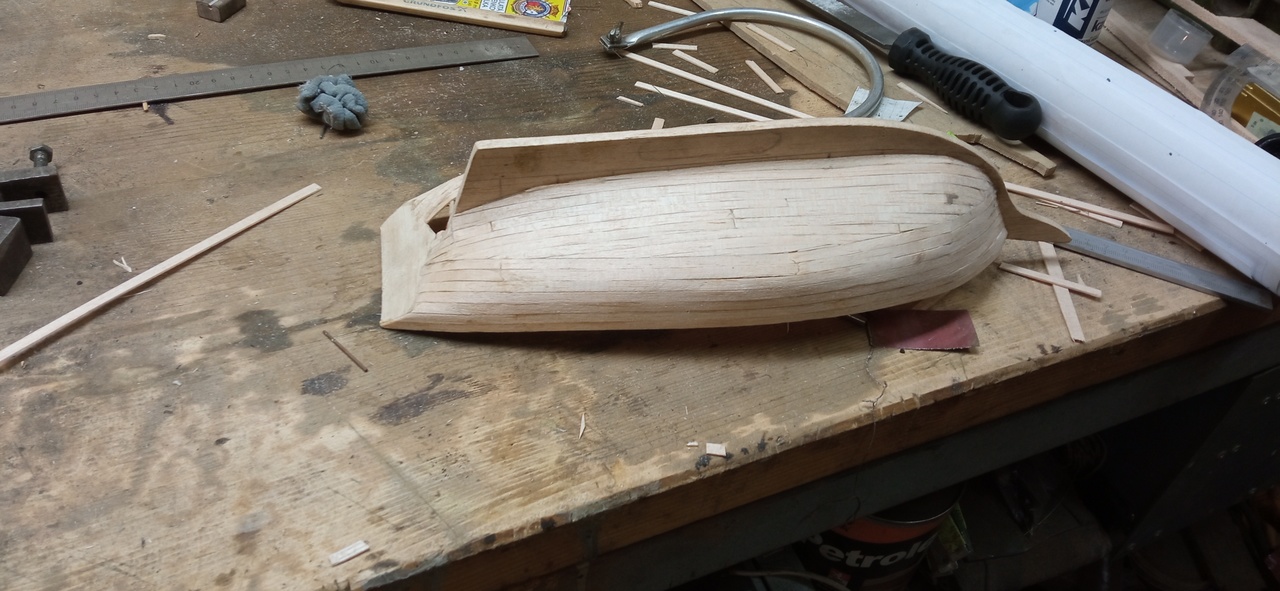 Chybí mi ještě z druhé strany poslední čtyři plaňky a trup mám za sebou