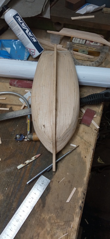 Ještě nevím jakou udělám osu kormidla a z čeho. Pevnost x váha. A hlavně, jak tam pak všechno nacpu dovnitř. Co kdybych udělal nejdřív vnitřnosti a potom plaňkování? Není to blbost?